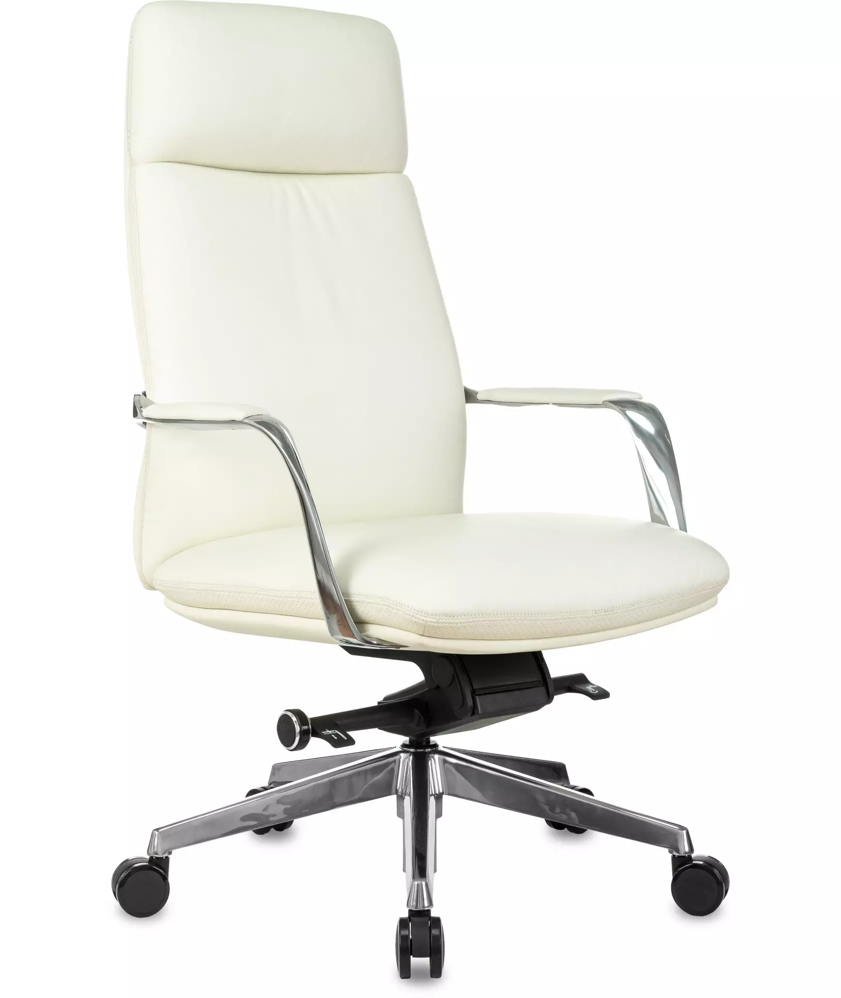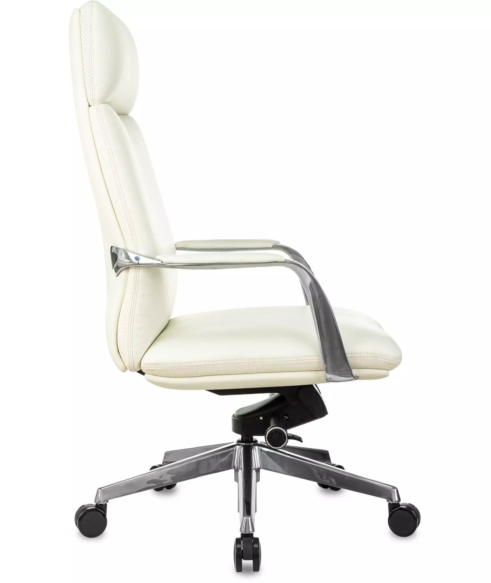 Кресло руководителя Бюрократ VEGA/WHITE белый кожа с подголовником, крестовина алюминий