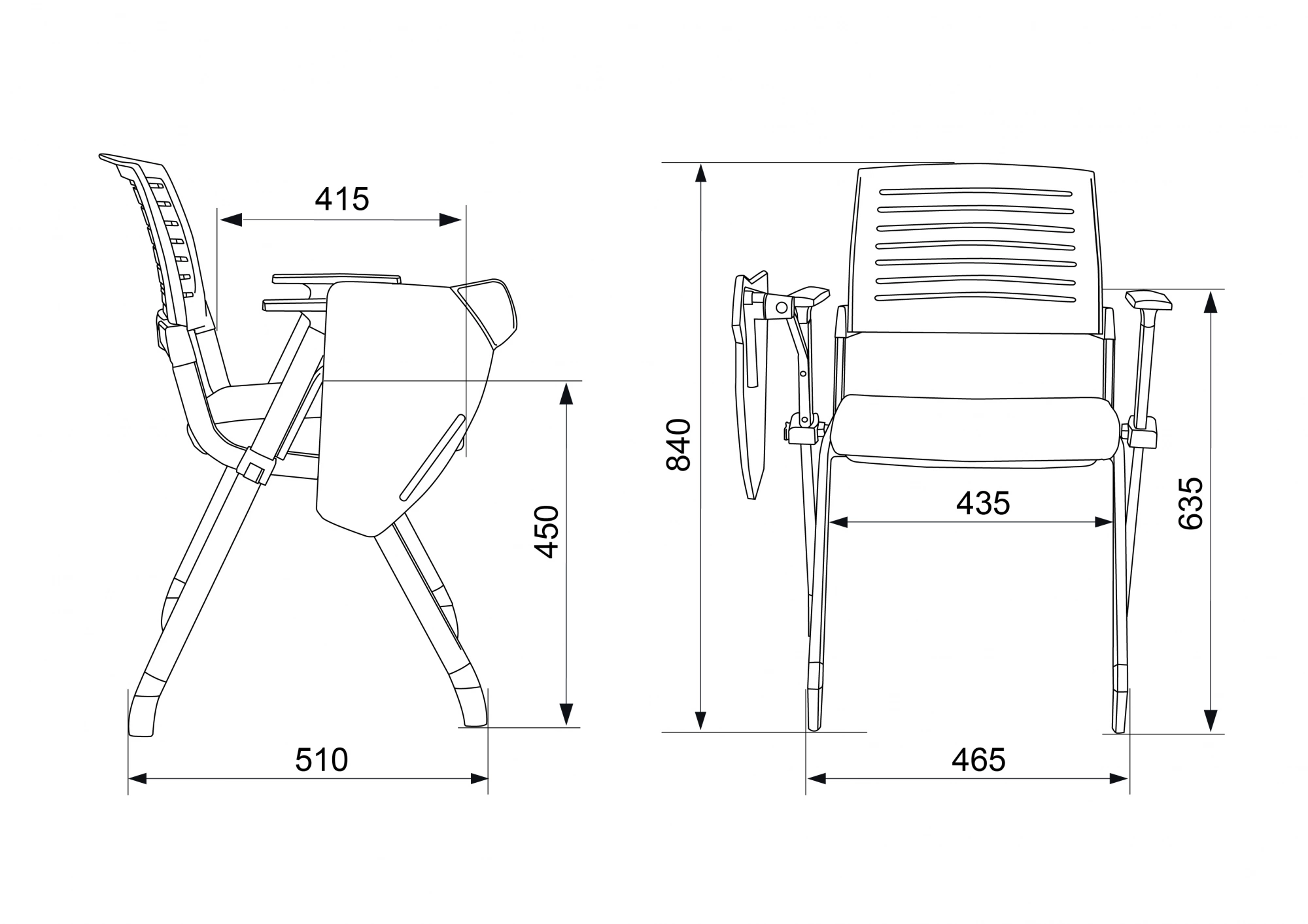 | Высота кресла / стула MIN | 840 мм |