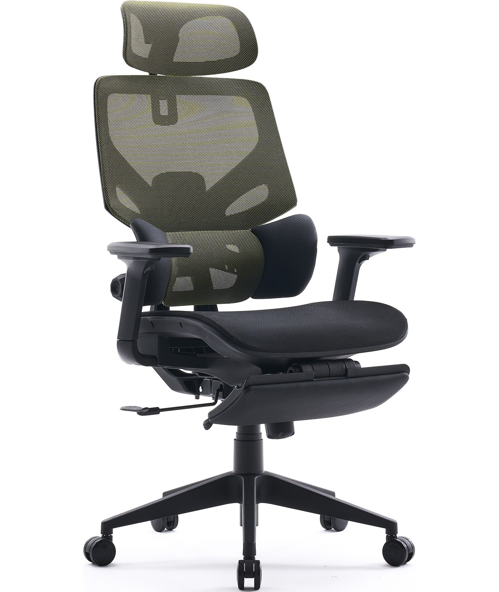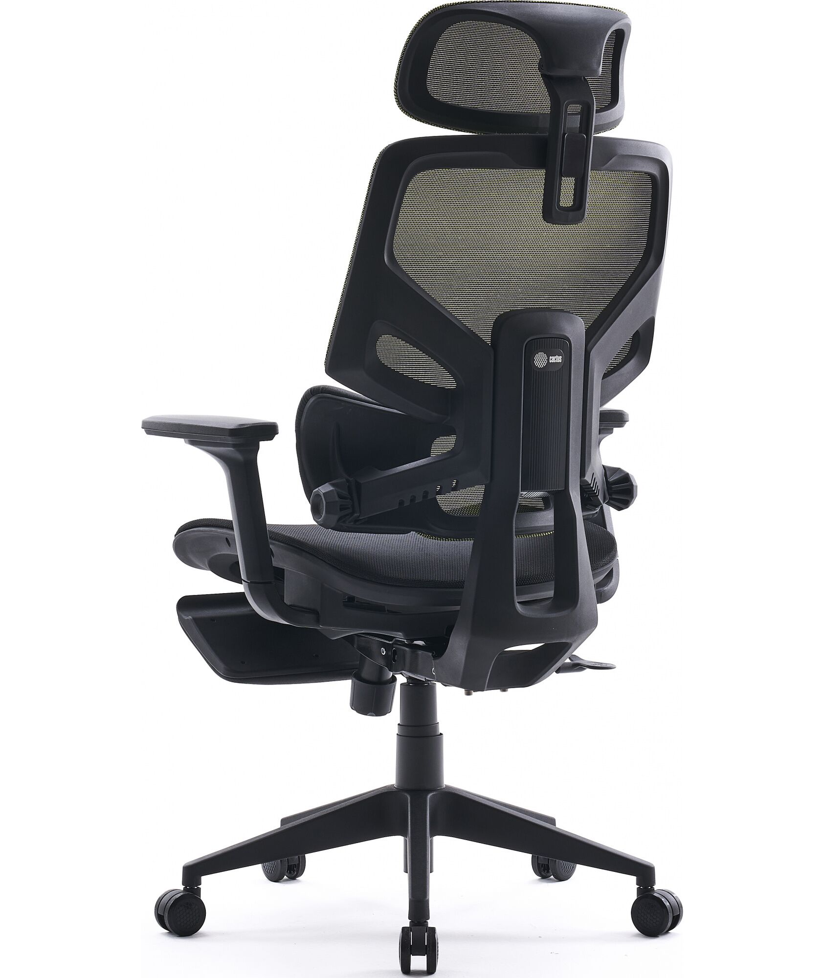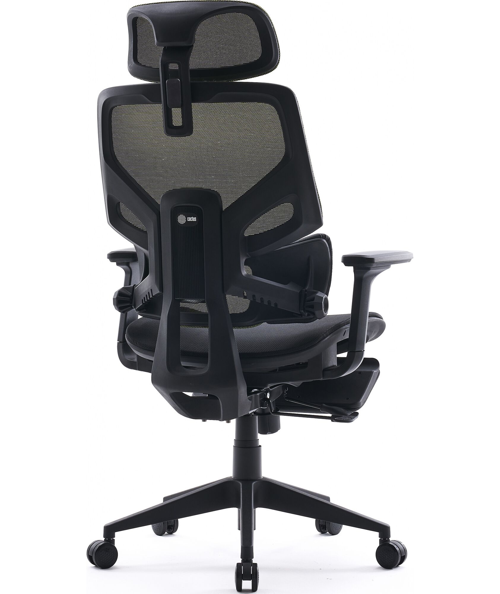 Кресло Cactus CS-CHR-MC01-LGNBK салатовый сиденье черный сетка/ткань с подголов. крестов. пластик подст.для ног