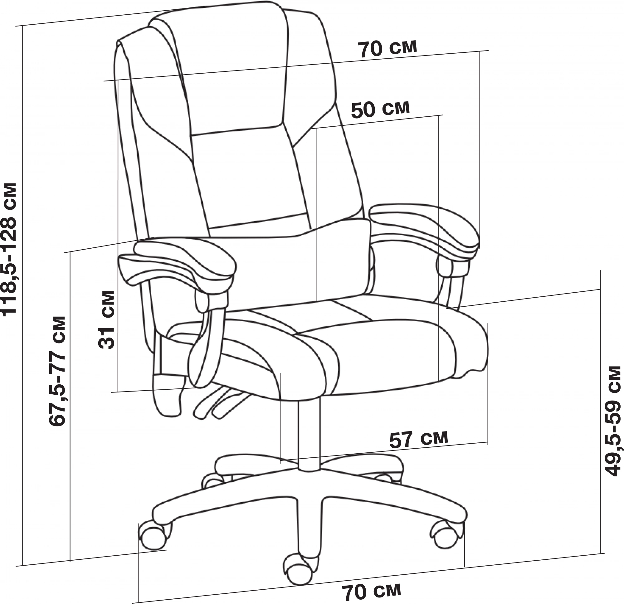 | Высота кресла / стула MIN | 1250 мм |
