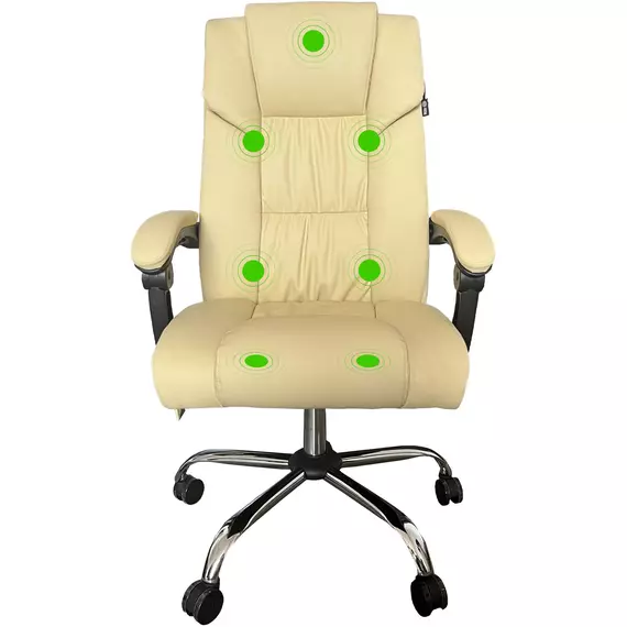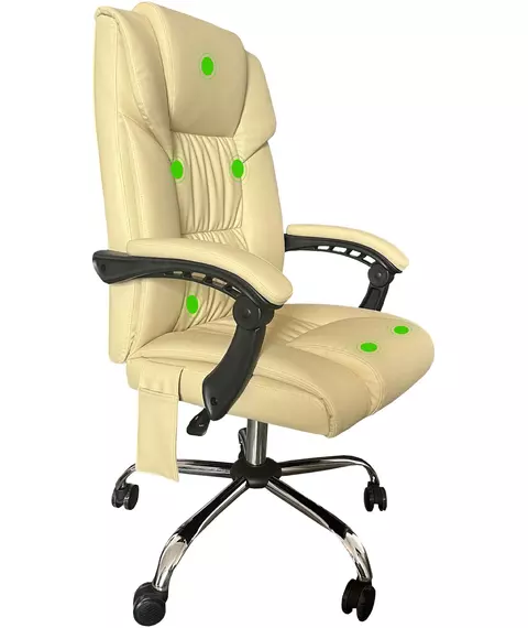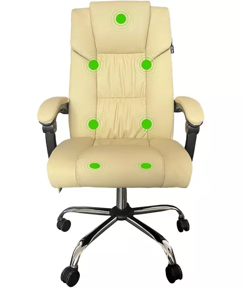 Кресло Cactus CS-CHR-OC04M-WT с вибромассажем слоновая кость эко.кожа с подголов. крестов.