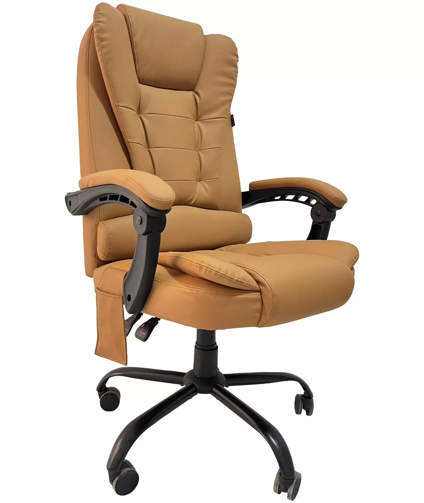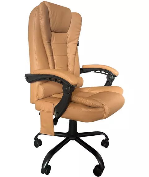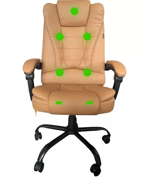 Кресло Cactus CS-CHR-OC05M-BR с вибромассажем бежевый эко.кожа с подголов. крестов. пластик черный