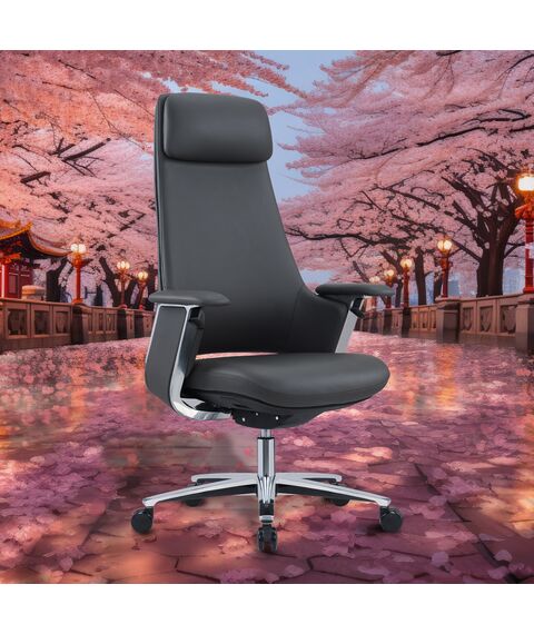 Кресло руководителя Cactus CS-LBK-KYOTO кожа с подголов. крестов. алюминий