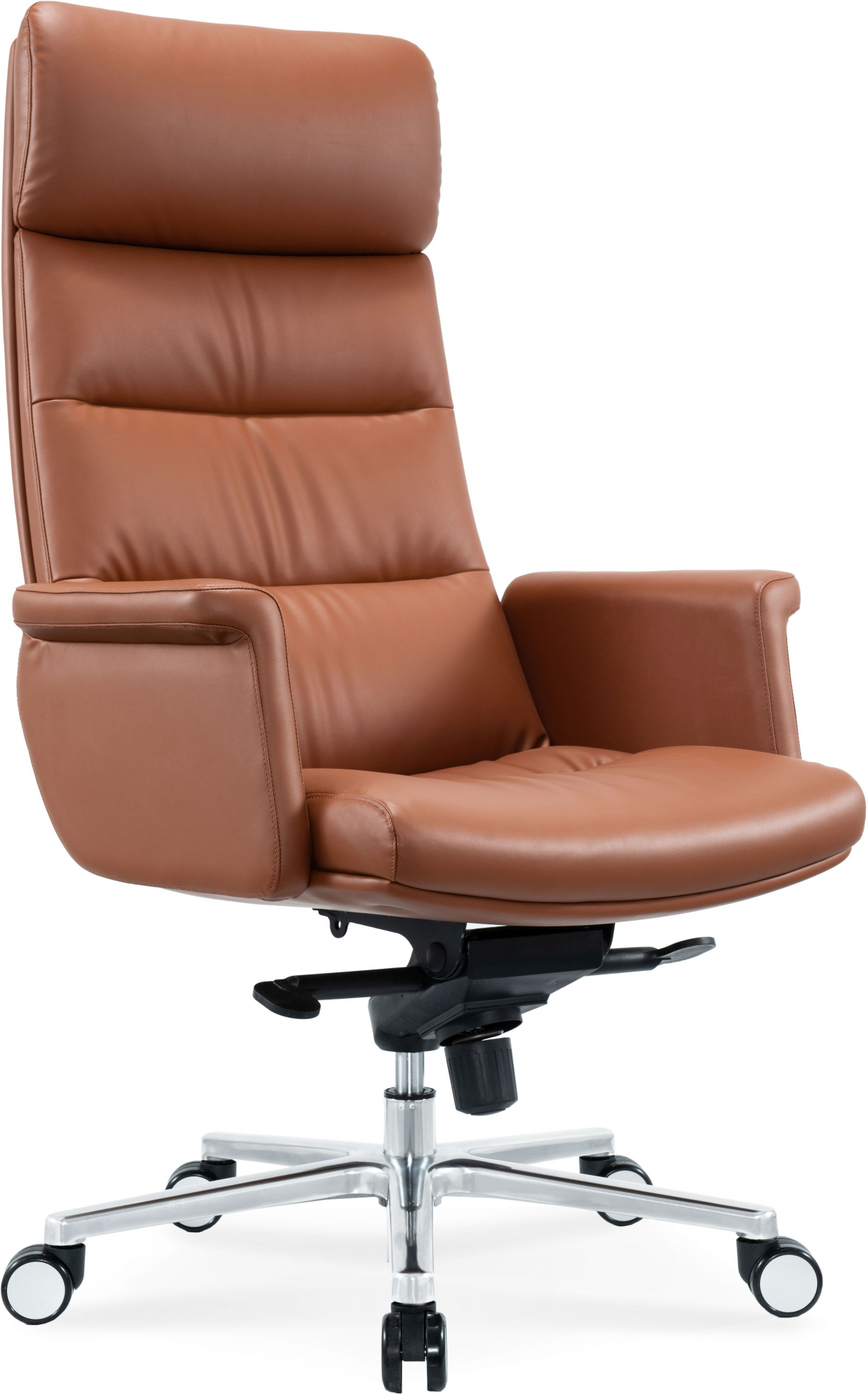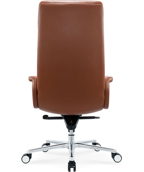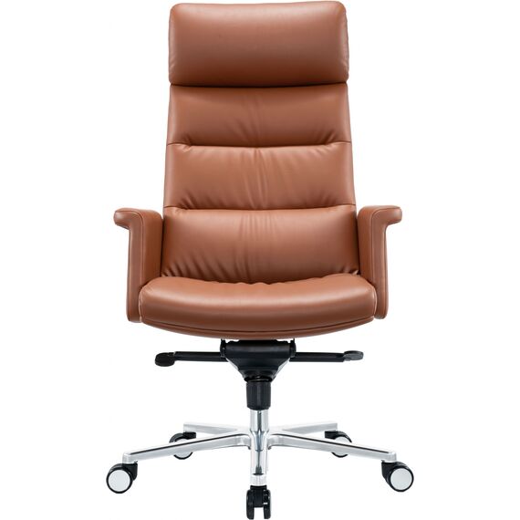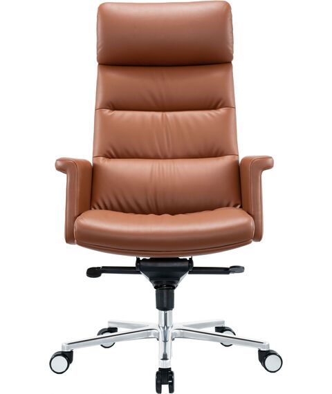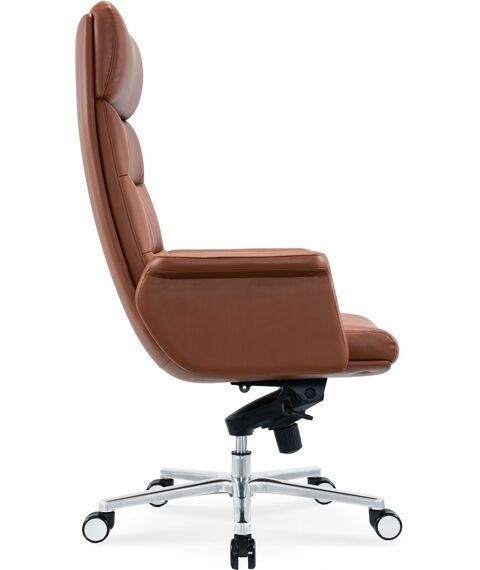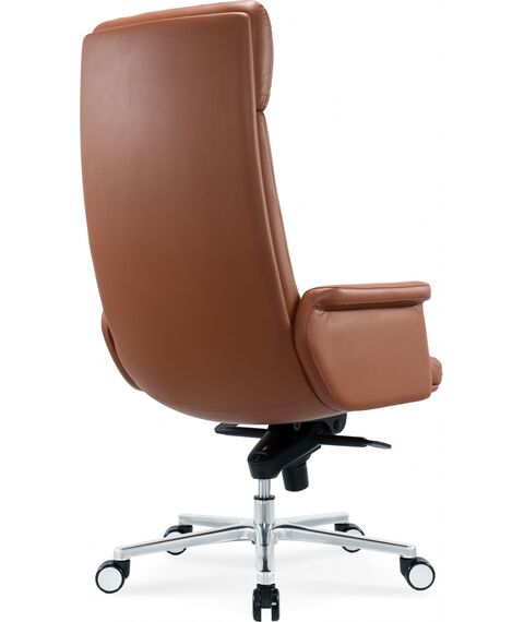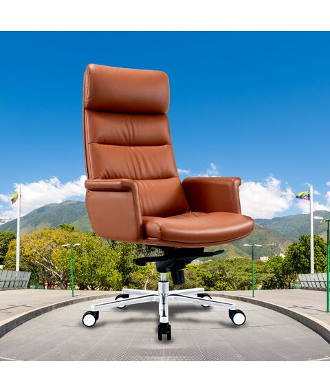 Кресло CS-LBR-CARACAS с обивкой из натуральной кожи теплого коричневого оттенка отсылает своим видом к моделям известных итальянских дизайнеров. Кресло оборудовано механизмом качания с фиксацией в 4 положениях. CS-LBR-CARACAS имеет полностью обитые фиксированные подлокотники, которые образуют единое целое с сиденьем. Надежная и элегантная крестовина из полированного алюминия удачно дополняет классический вид модели.