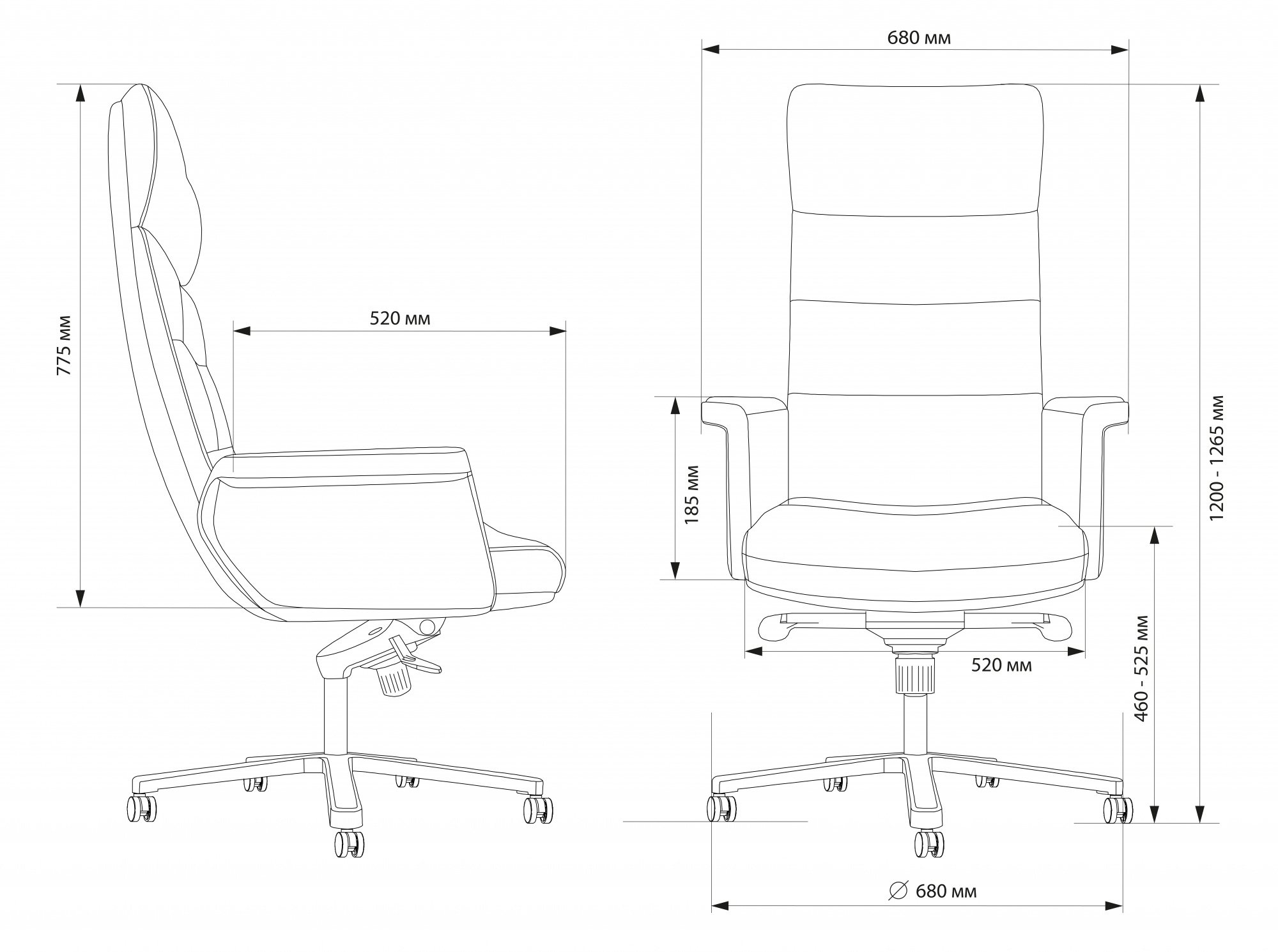 | Ширина с подлокотниками | 680 мм |
