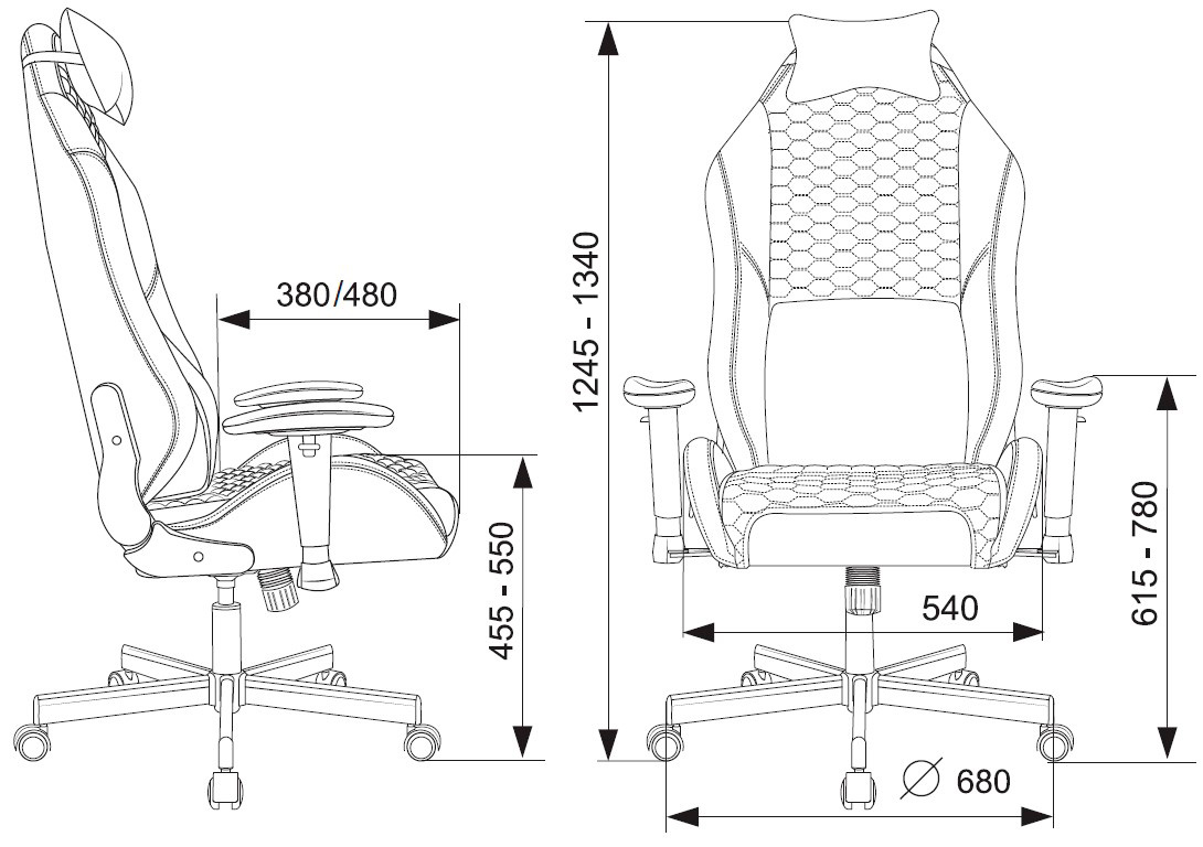 | Высота с подлокотниками MIN | 615 мм |