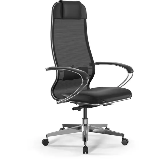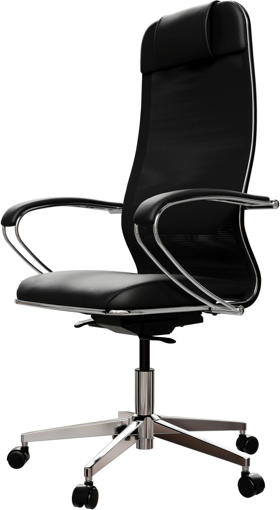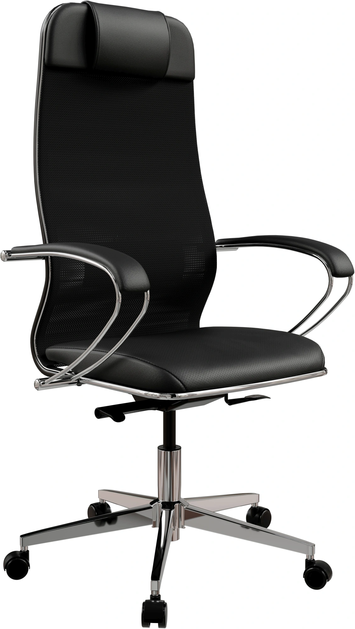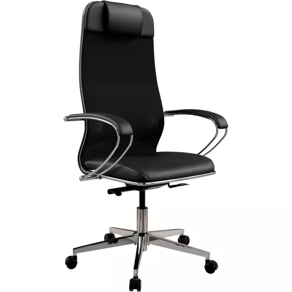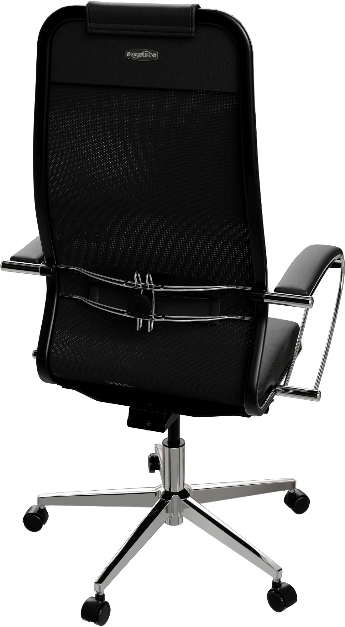 Кресло Метта ErgoLife Comfort черный сиденье черный сет./экокожа с подголов. крестов. сталь хром [Z1F6.16.1.543]