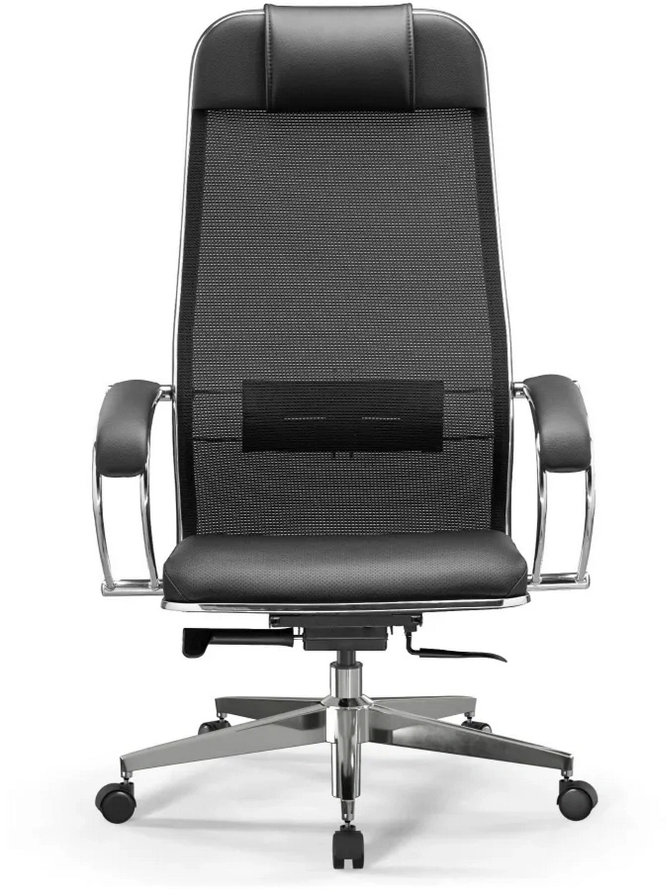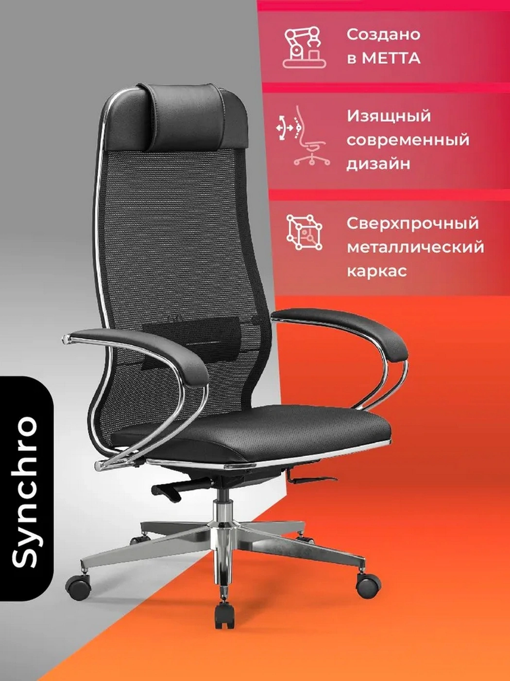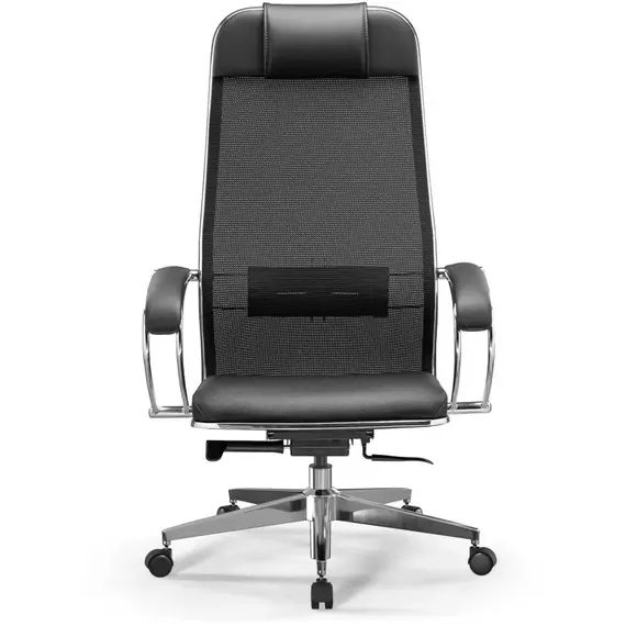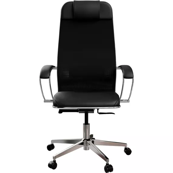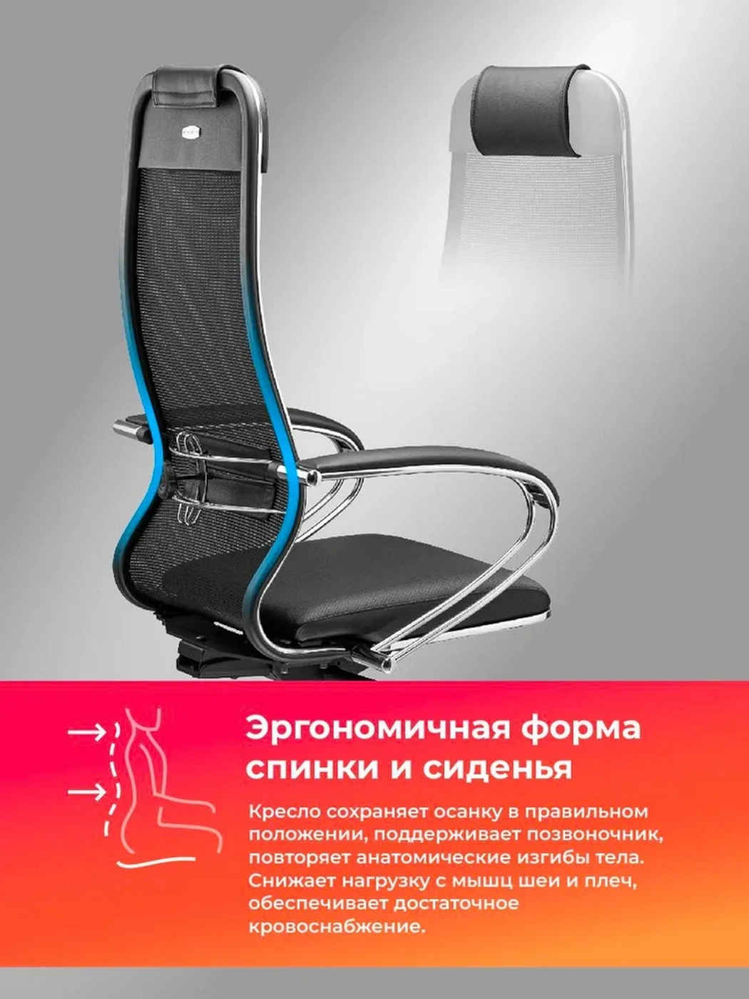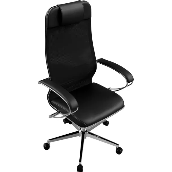 Кресло Метта ErgoLife Comfort черный сиденье черный сет./экокожа с подголов. крестов. сталь хром [Z1F6.16.1.543]