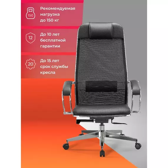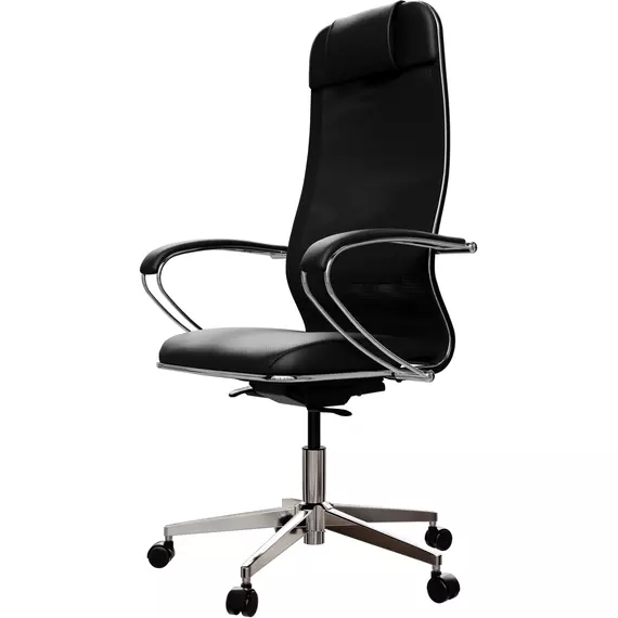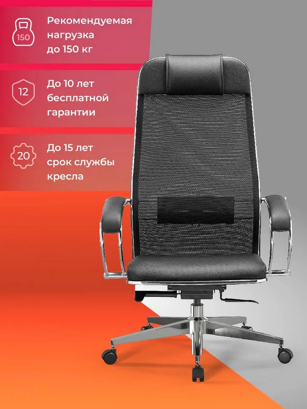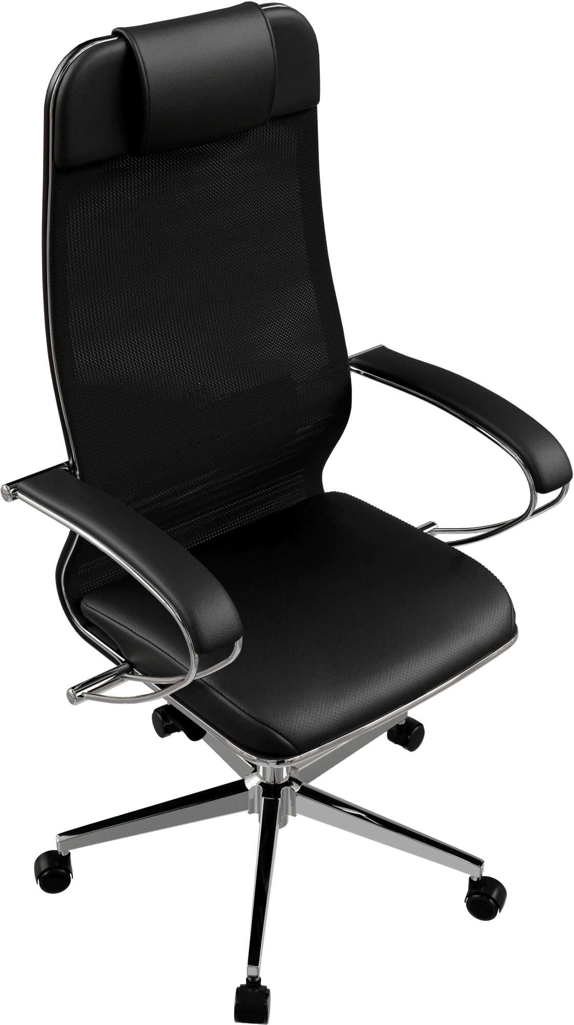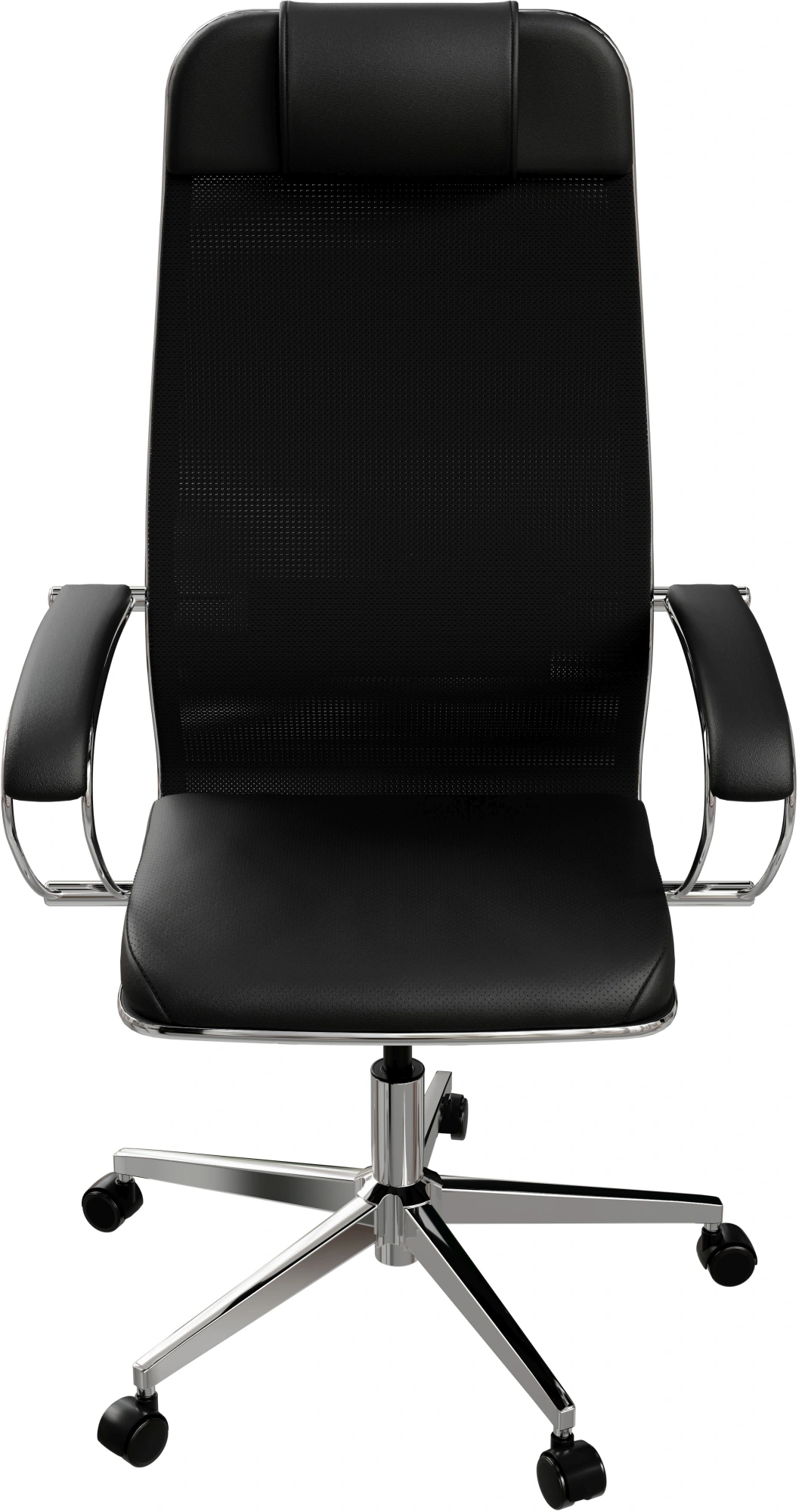 Кресло Метта ErgoLife Comfort черный сиденье черный сет./экокожа с подголов. крестов. сталь хром [Z1F6.16.1.543]