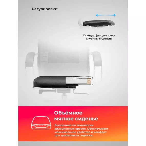 | Регулировка | высоты (газлифт), глубины сиденья, жесткости качания, поясничной области |