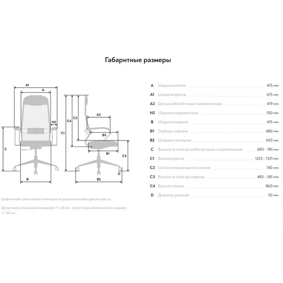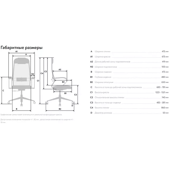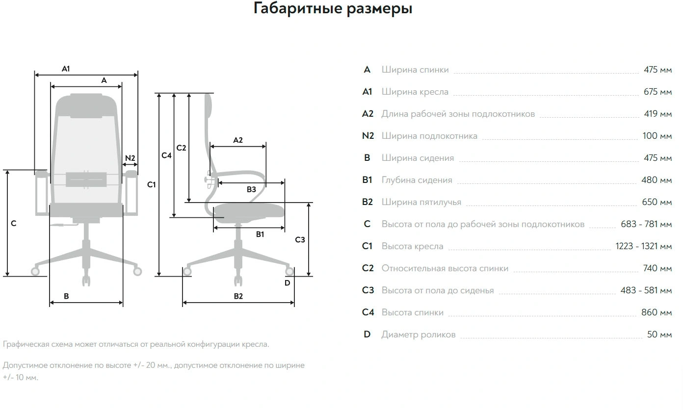 | Ширина спинки | 475 мм |