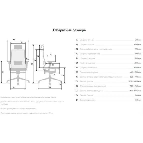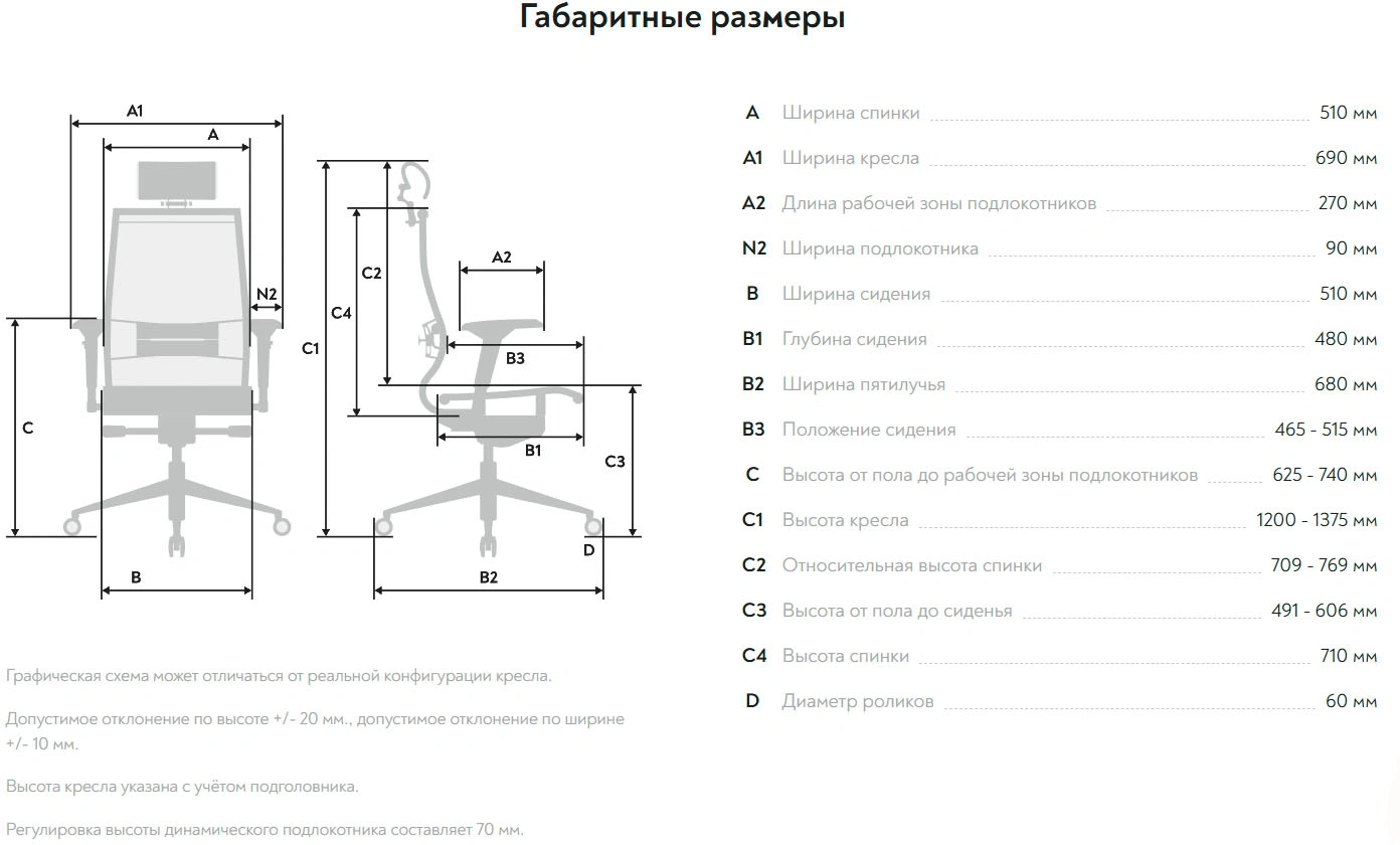 | Регулировка | высоты (газлифт), высоты подголовника, высоты подлокотников, высоты сиденья (без спинки), глубины сиденья, жесткости качания, положения подлокотников, поясничной области, угла наклона подголовника |