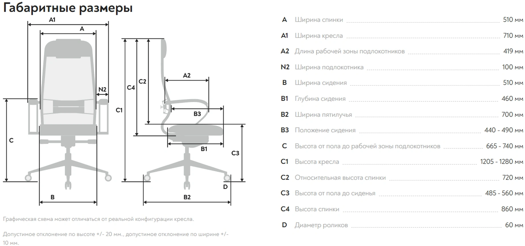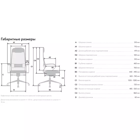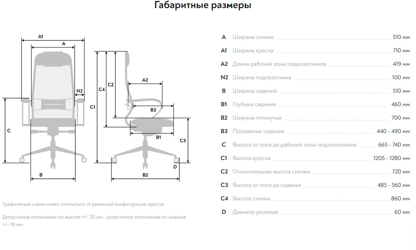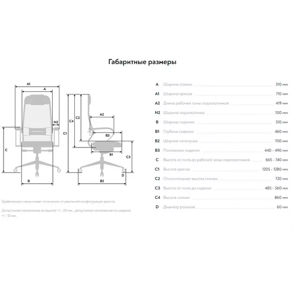 | Глубина сиденья MIN | 460 мм |