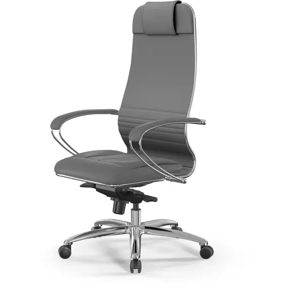 Кресло Метта Samurai KL-1 серый сиденье серый экокожа с подголов крестов алюминий хром [Z543.2.1.49]