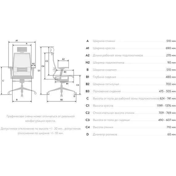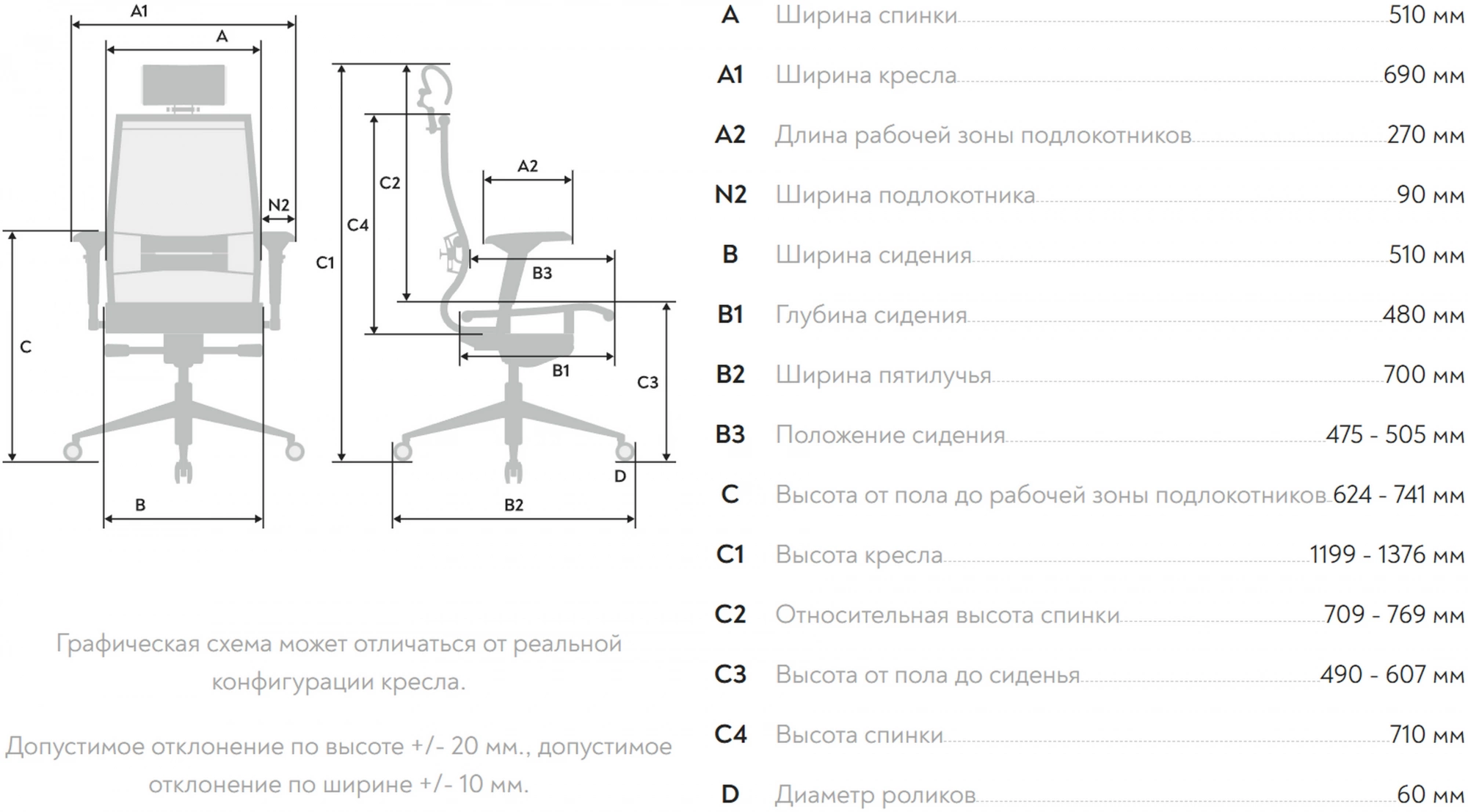 | Регулировка | высоты (газлифт), высоты подголовника, высоты сиденья (без спинки), глубины сиденья, жесткости качания, положения подлокотников, поясничной области, угла наклона подголовника |