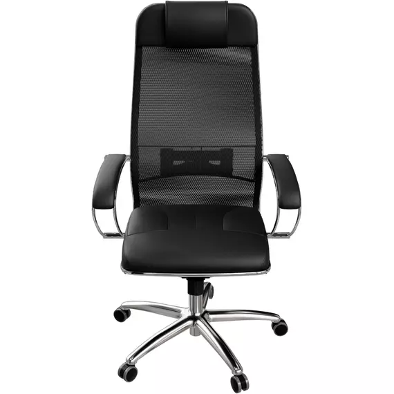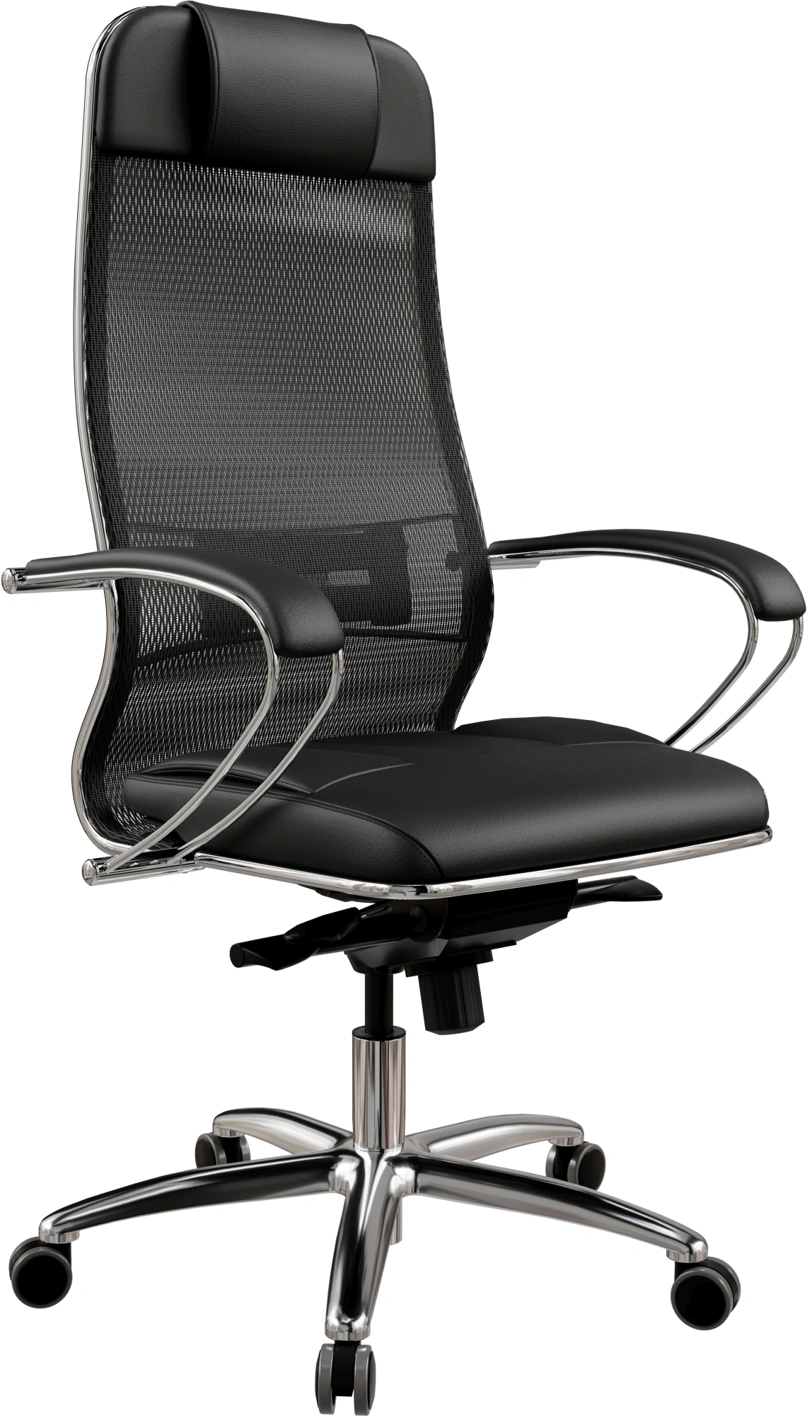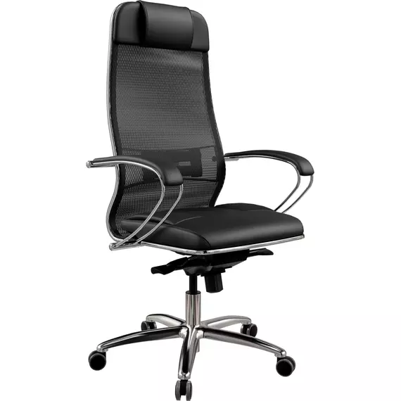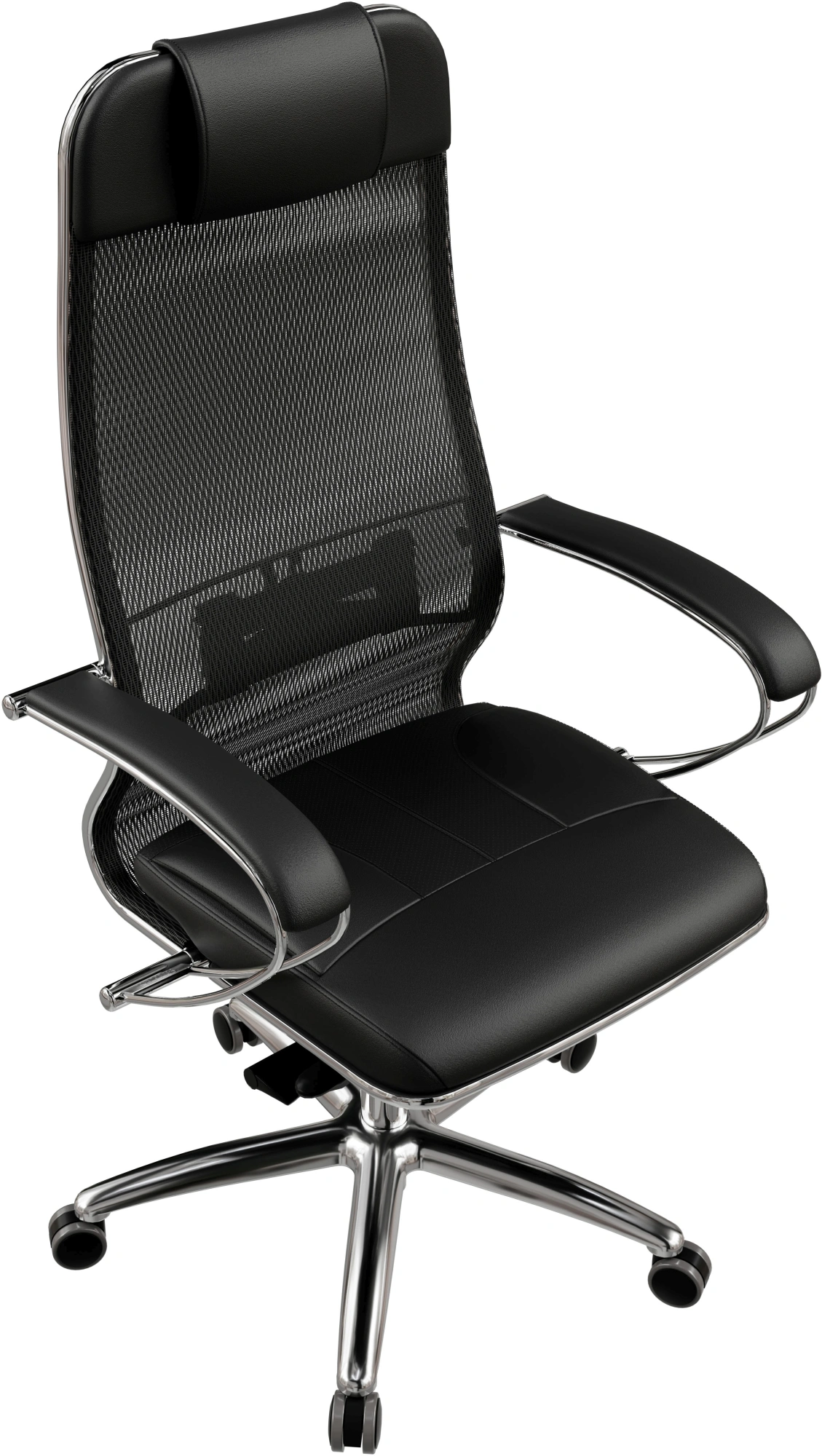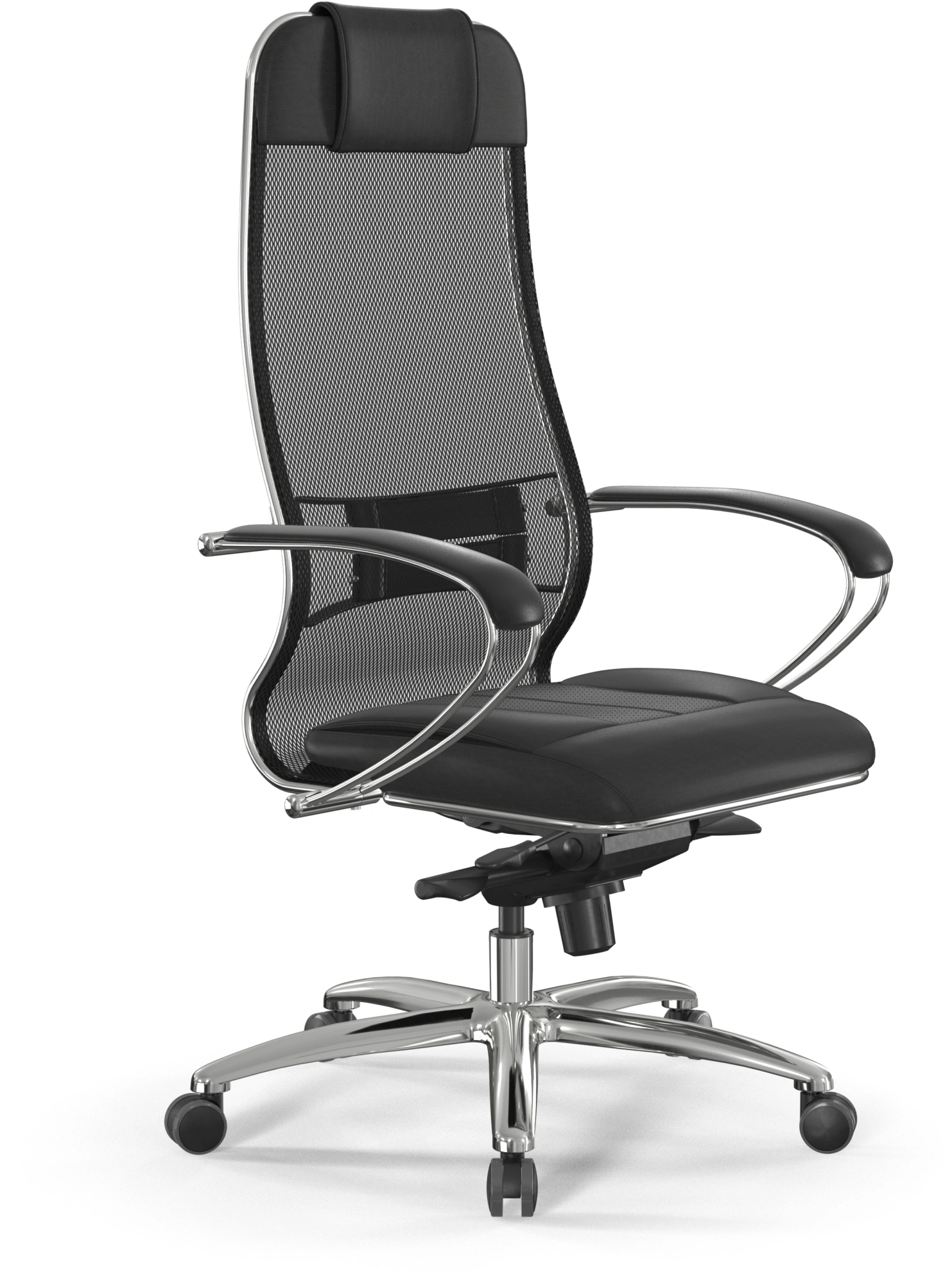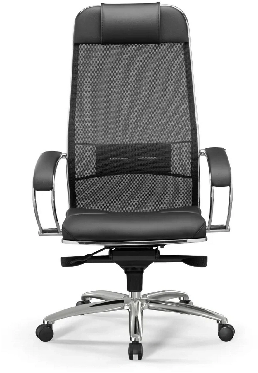 Кресло Метта Samurai SL-1 черный сиденье черный сет./экокожа с подголов. крестов. алюминий хром [ZA.2.1.49]