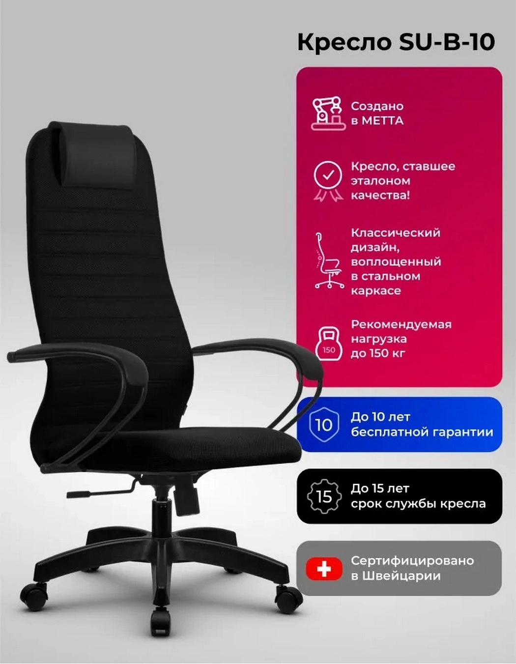 Кресло Метта SU-B-10 черный сиденье черный сетка/ткань с подголов крестов пластик хром [ZE4.12.1.222]