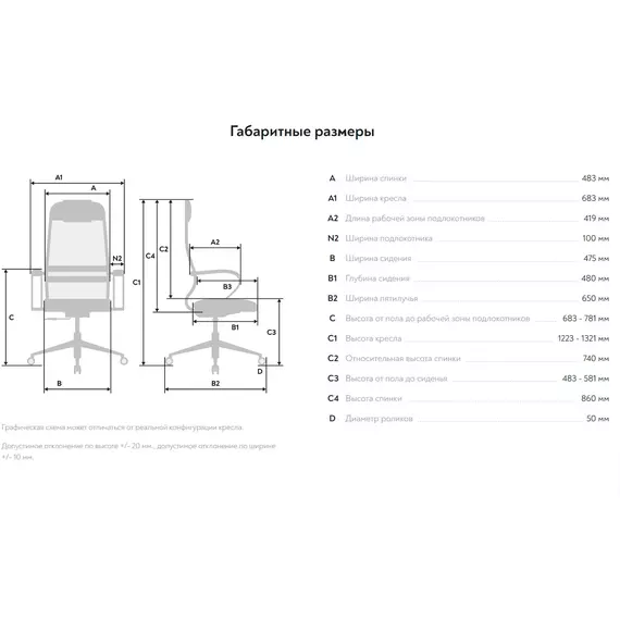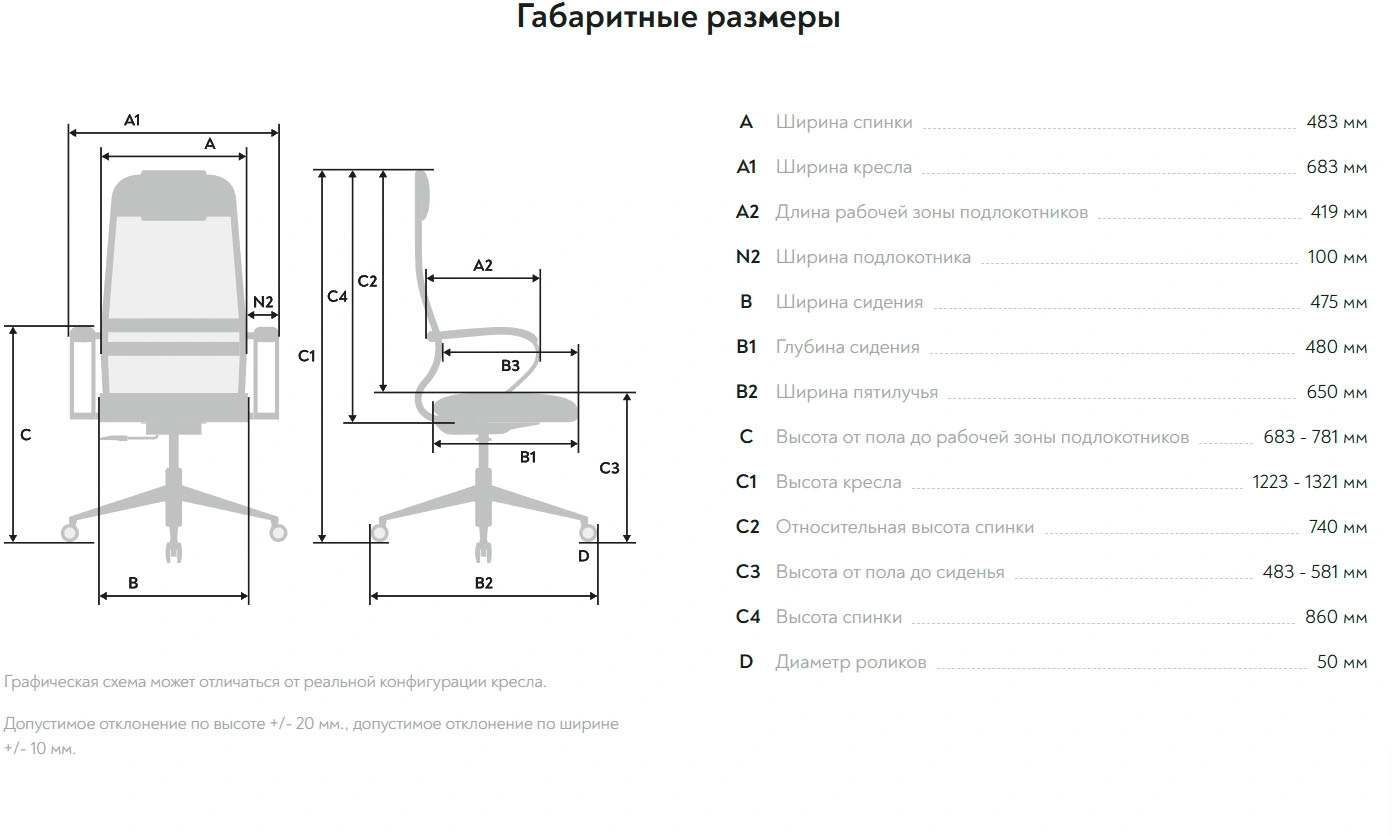 | Ширина спинки | 475 мм |