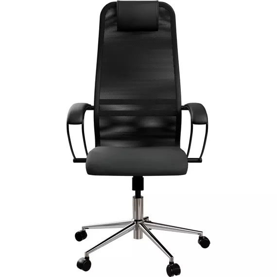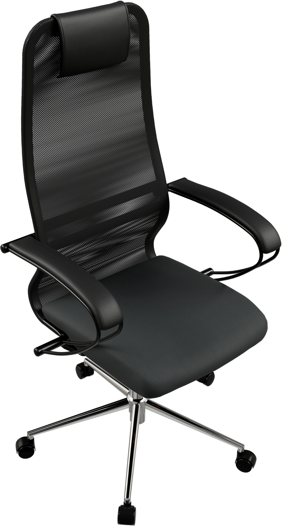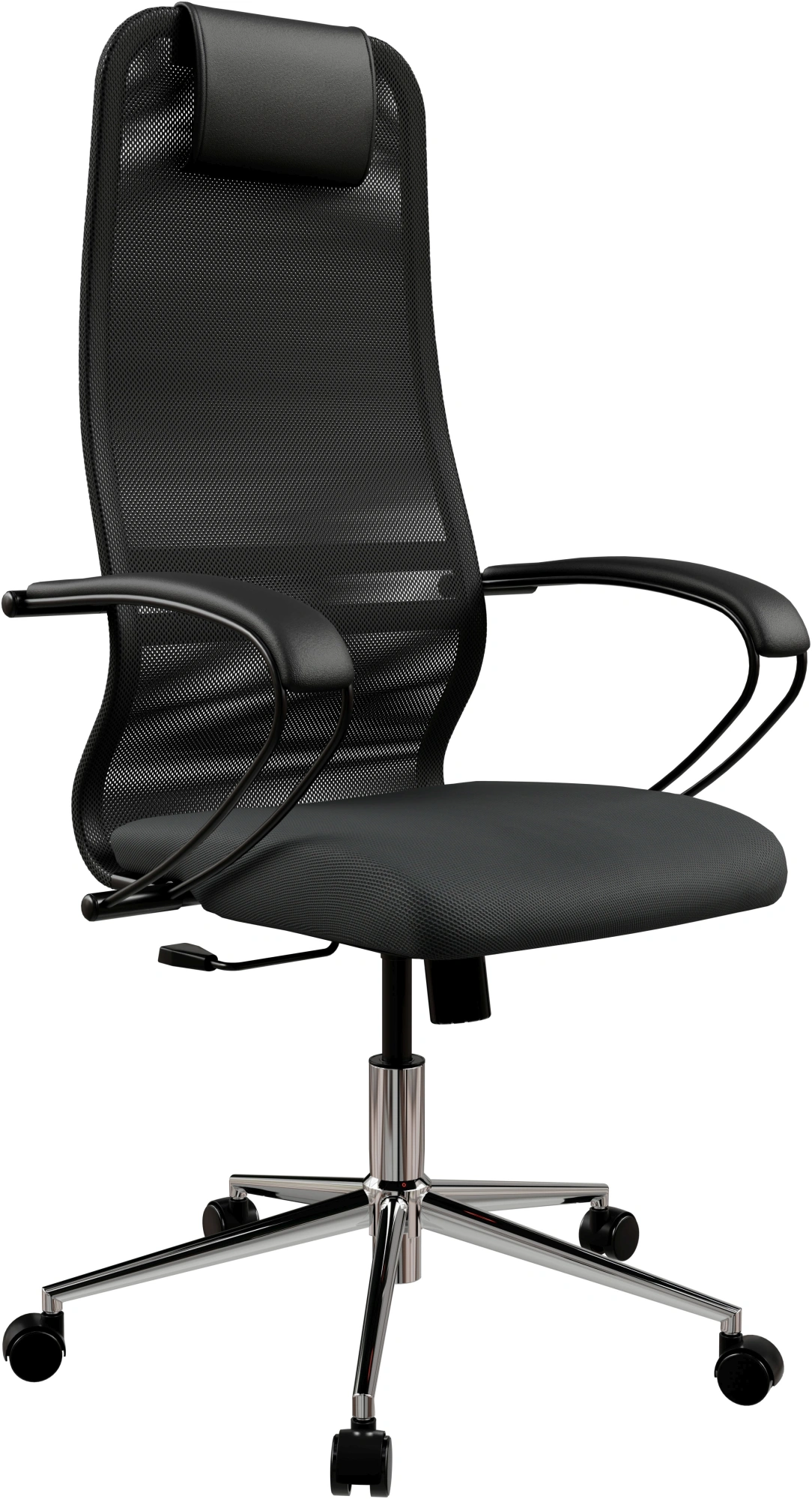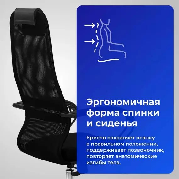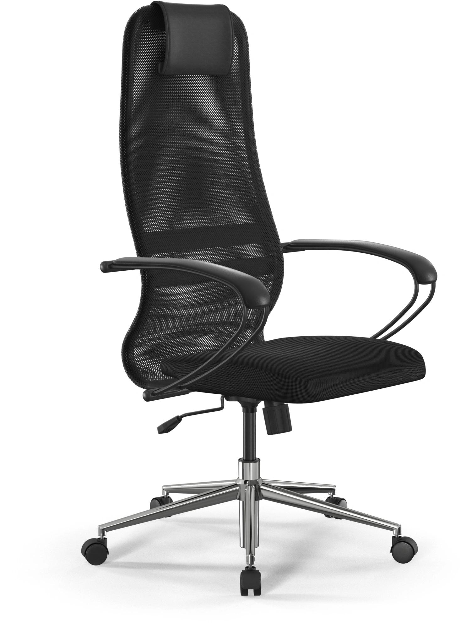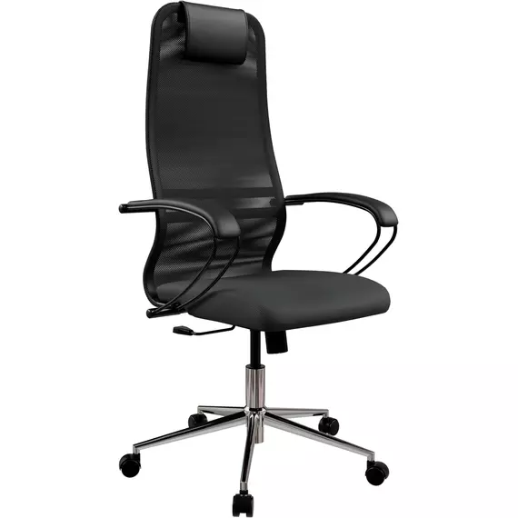Кресло Метта SU-B-8 черный сиденье черный сетка/ткань с подголов. крестов. сталь хром [ZDA.12.1.2A2]