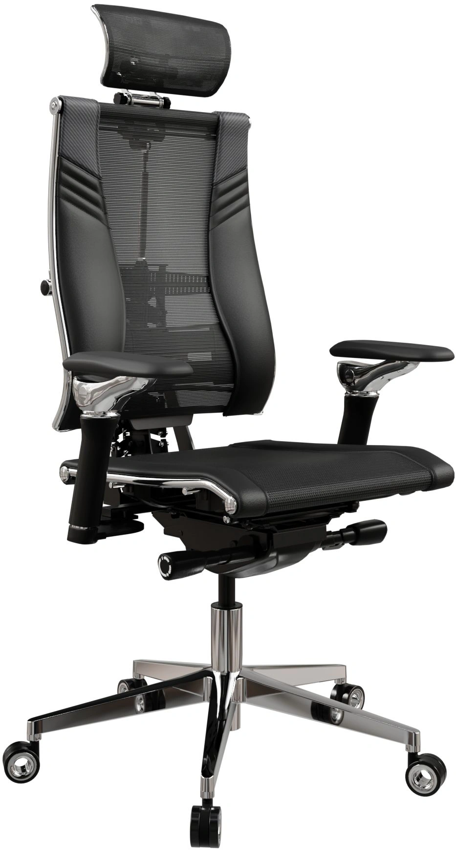 Кресло руководителя эргономичное Метта Yoga Spine Triumph B2 черный, Infinity Easy Clean экокожа, сетка, подголовник, крестов, алюминий, хром [Z509734677]