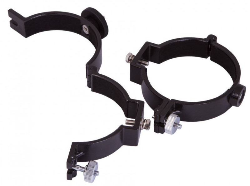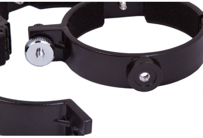 - Кольца изготовлены из прочного алюминиевого сплава. Винтовое крепление на одном кольце дает возможность установить на оптическую трубу камеру