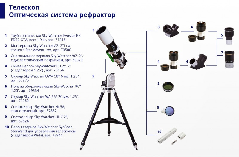 - Совместимость с монтировками: азимутальные и экваториальные Sky-Watcher SynScan GOTO