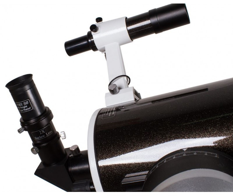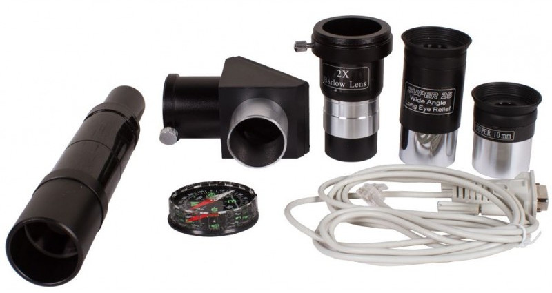 - Телескоп комплектуется двумя окулярами системы Кельнера. Окуляр с фокусным расстоянием 25 мм обеспечивает 60-кратное увеличение и подходит для обзорных наблюдений или поиска объектов. С помощью окуляра 10 мм можно в подробностях рассмотреть множество небесных тел с увеличением 150 крат