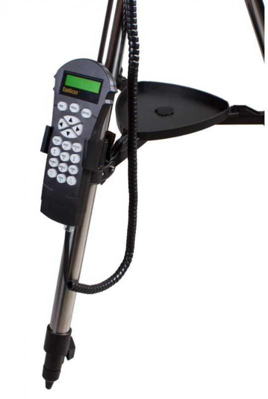 - Труба устанавливается на азимутальную монтировку с моторными приводами. Управление монтировкой осуществляется с помощью пульта и не требует специальных навыков, поэтому с ним легко справятся даже начинающие пользователи. База данных монтировки содержит координаты 42 900 астрономических объектов