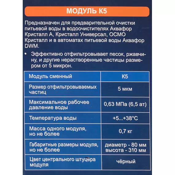 Картридж Аквафор К5 для проточных фильтров (упак.:1шт) [518556]