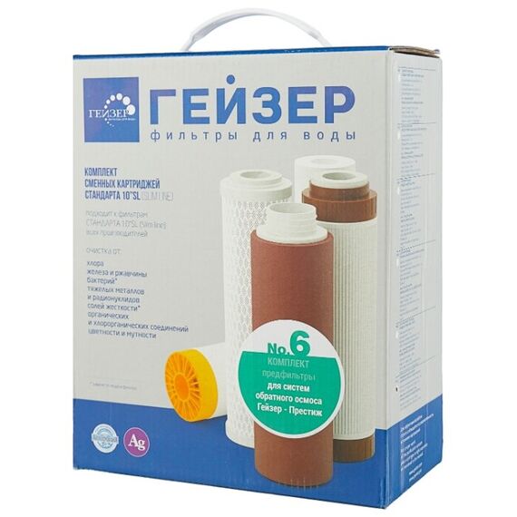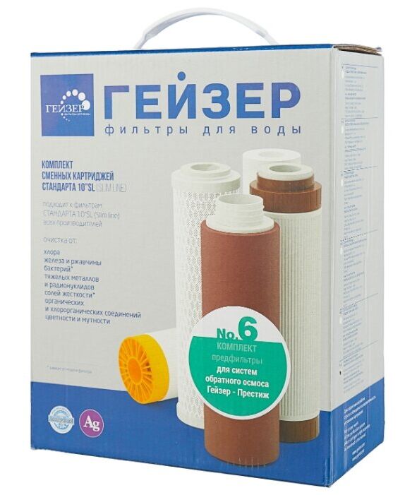Комплект картриджей Гейзер №6 предназначен для замены исчерпавших свой ресурс картриджей блока предочистки в системах обратного осмоса.