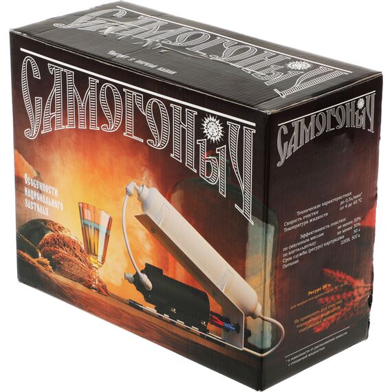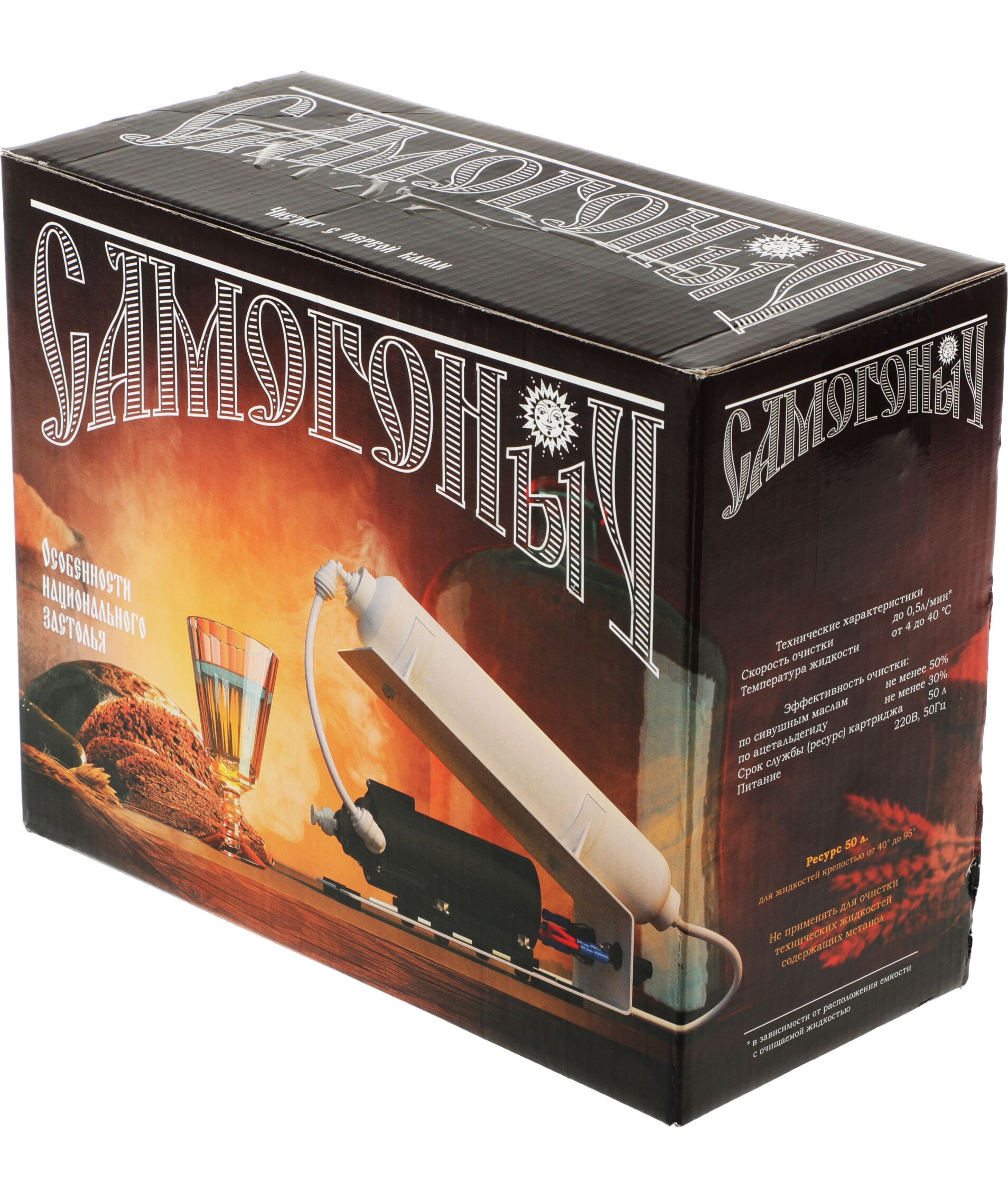 Разработан специально для очистки спиртосодержащих жидкостей, водки и самогона. Удаляет сивушные масла и альдегиды, вызывающие похмелье. Компактный и удобный — помпа позволяет использовать самый простой вариант: "ведро – фильтр – бутыль".