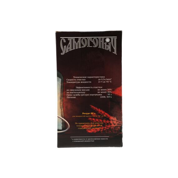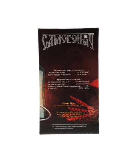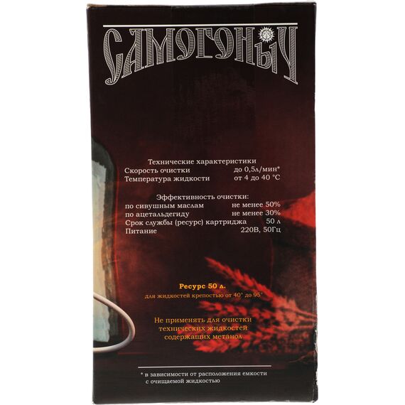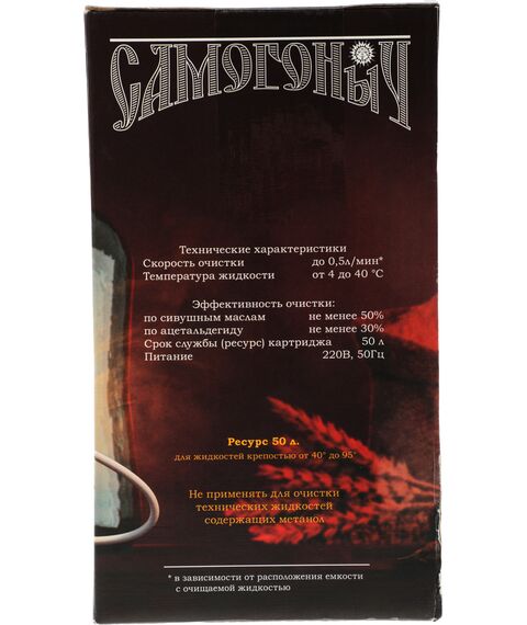 | Особенности | Эффективность очистки: по сивушным маслам не менее 50%; по ацетальдегиду не менее 30%. |
