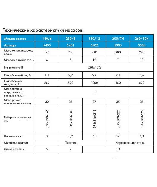 - Максимальный напор: 7 м