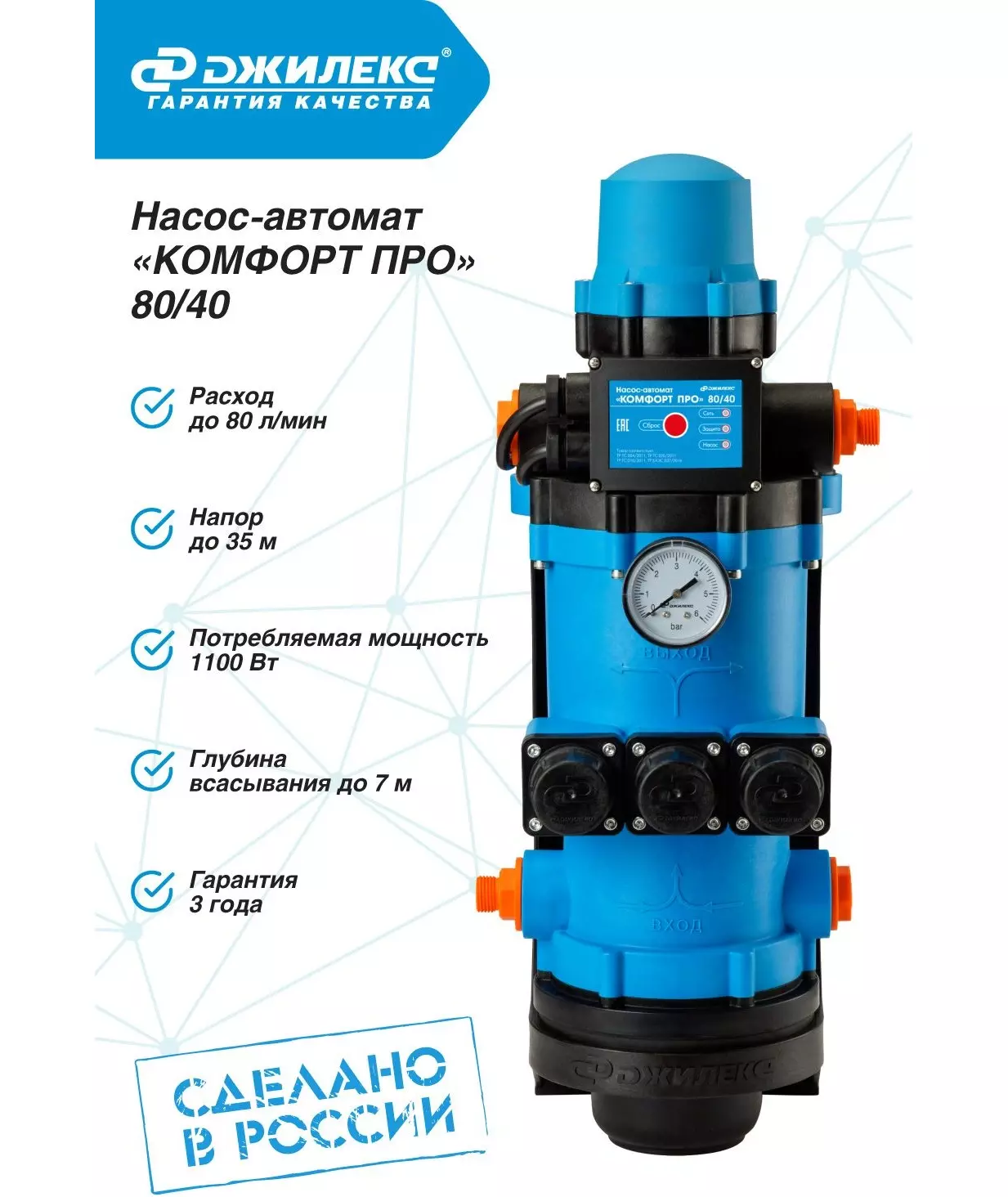 Насос центробежный Джилекс Комфорт Про 80/40 1100Вт, 4800л/час, Блок автоматики [4004]