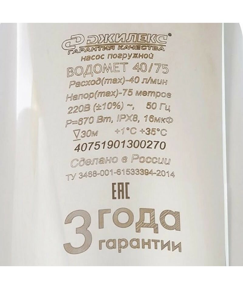 - Вторая цифра (75) - максимальный напор в метрах