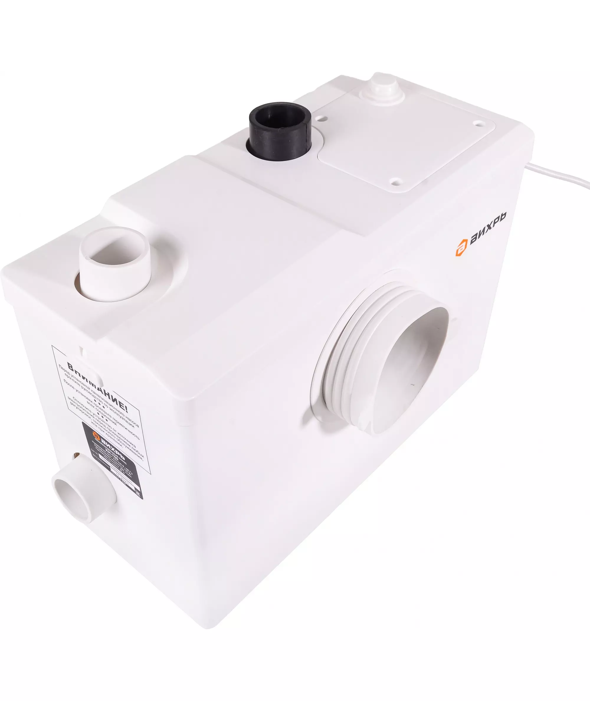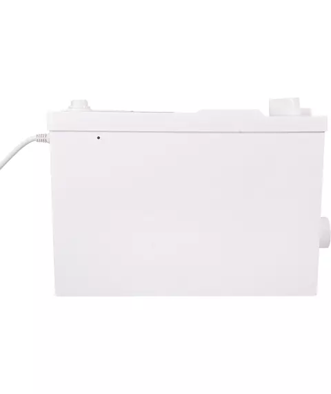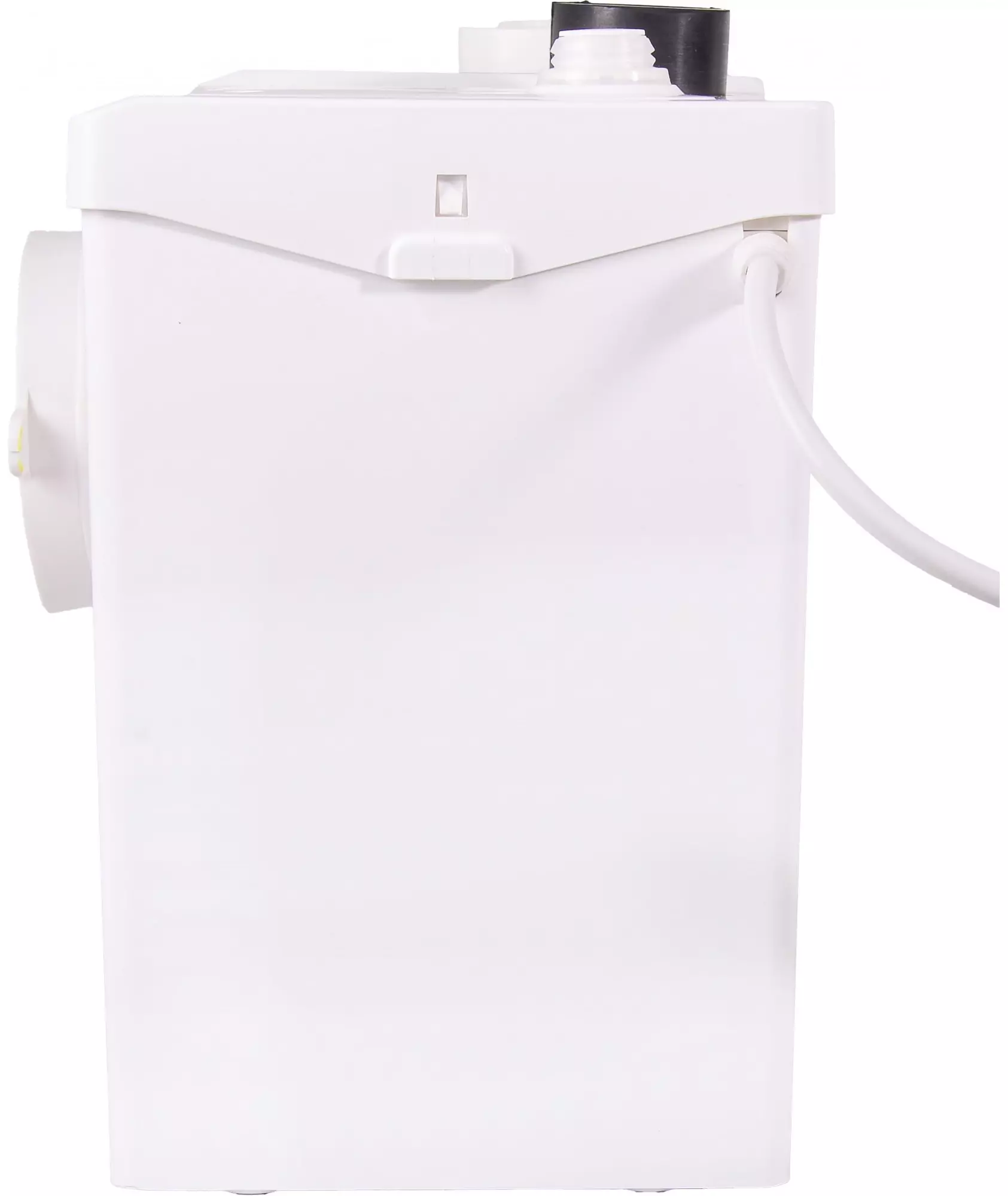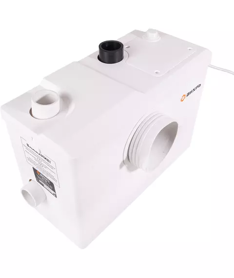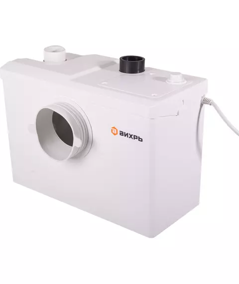 | Особенности | Максимальный напор по вертикали 9 м. Максимальный напор по горизонтали 90 м. Медная обмотка двигателя. Работает полностью в автоматическом режиме. Наличие ножей предотвращает засор. Вход под туалет. Количество входом под душ, раковину и т.д. - 2 |
