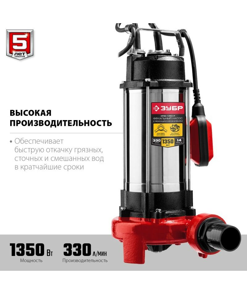 Фекальный насос с режущим механизмом Зубр НПФ-1350-Р 1350 Вт