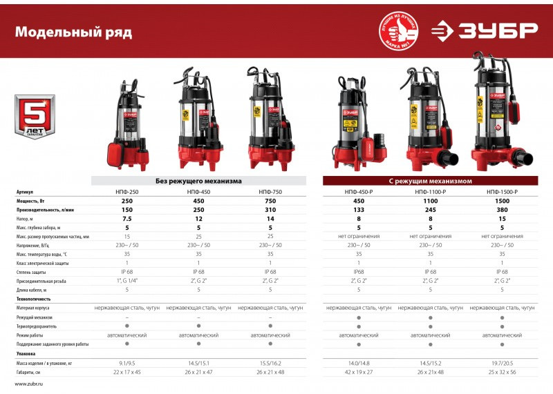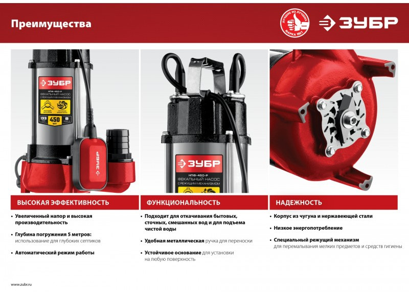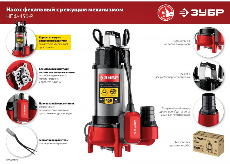 Фекальный насос с режущим механизмом Зубр НПФ-450-Р 450 Вт