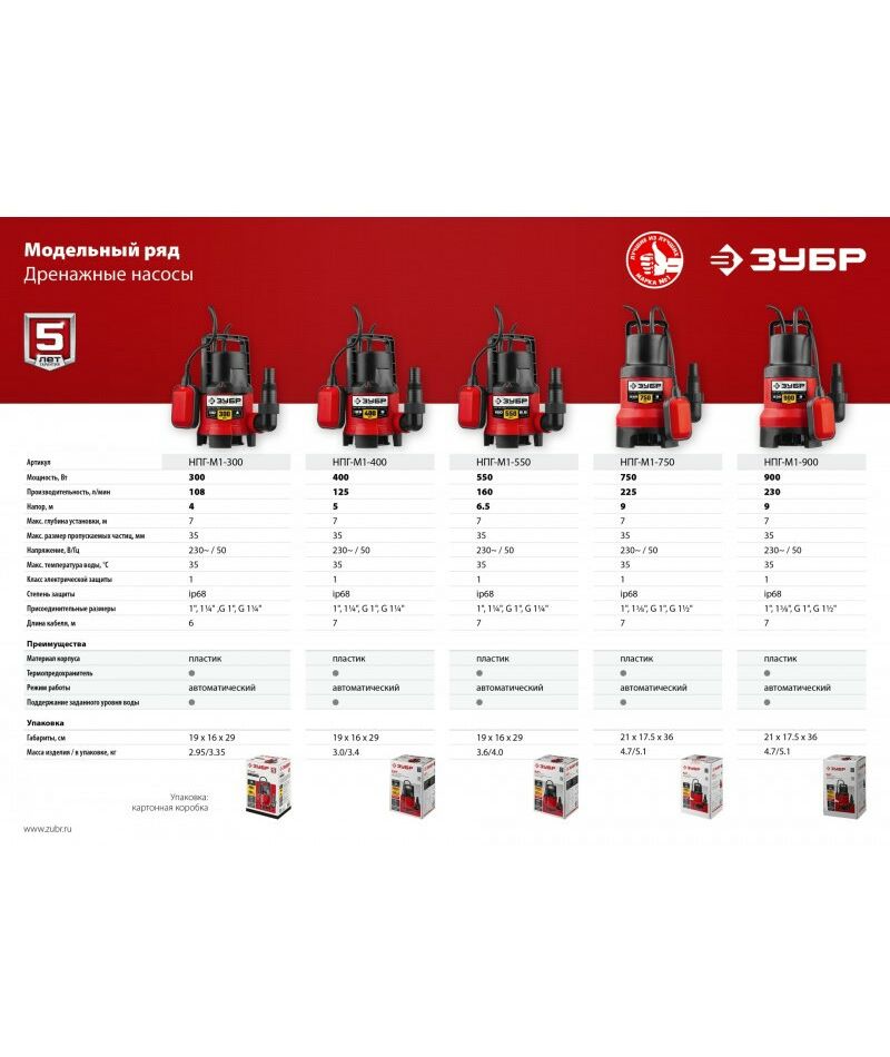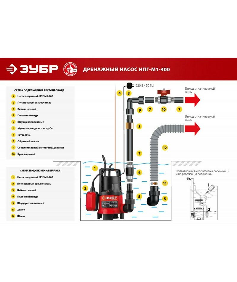 Дренажный насос для грязной воды Зубр НПГ-М1-400 400 Вт