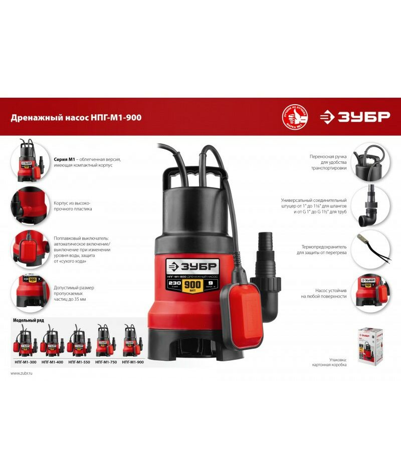 Дренажный насос для грязной воды Зубр НПГ-М1-900 900 Вт