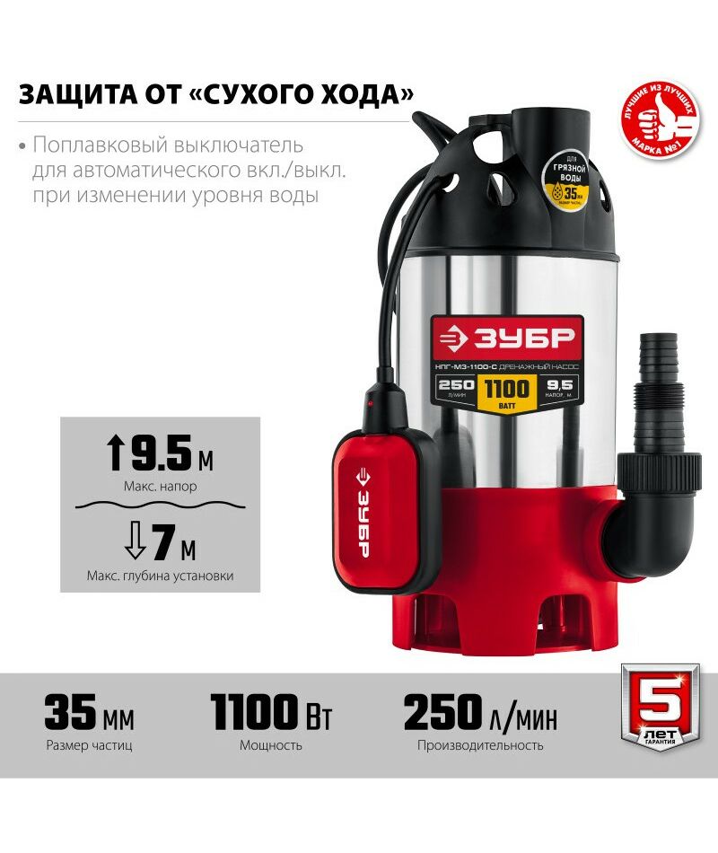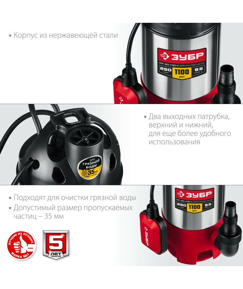 Дренажный насос для грязной воды Зубр НПГ-М3-1100-С корпус - нерж. сталь, 1100 Вт