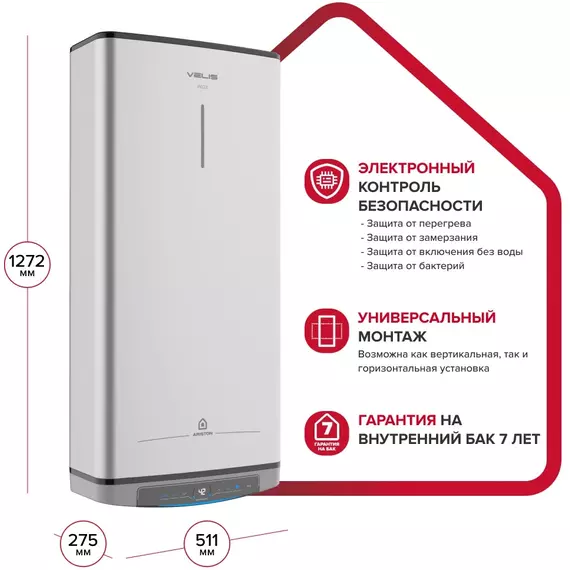 | Особенности | Встроенный Wi-Fi модуль. +15% горячей воды за то же время благодаря технологии WaterPlus. Cистема автодиагностики. Трехступенчатая электронная система защиты. Увеличенный магниевый анод для дополнительной защиты. Профессиональная система защиты от бактерий. |