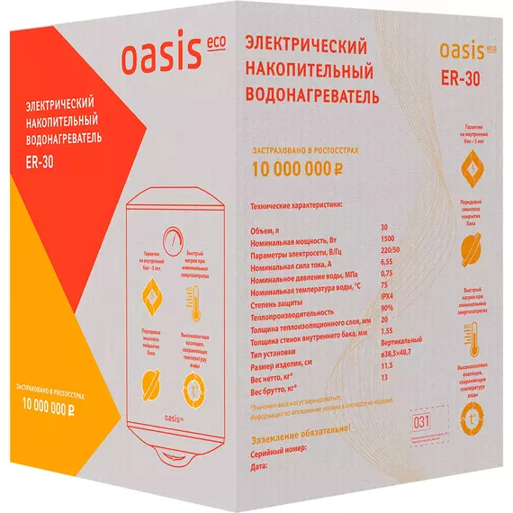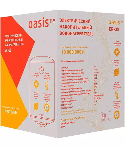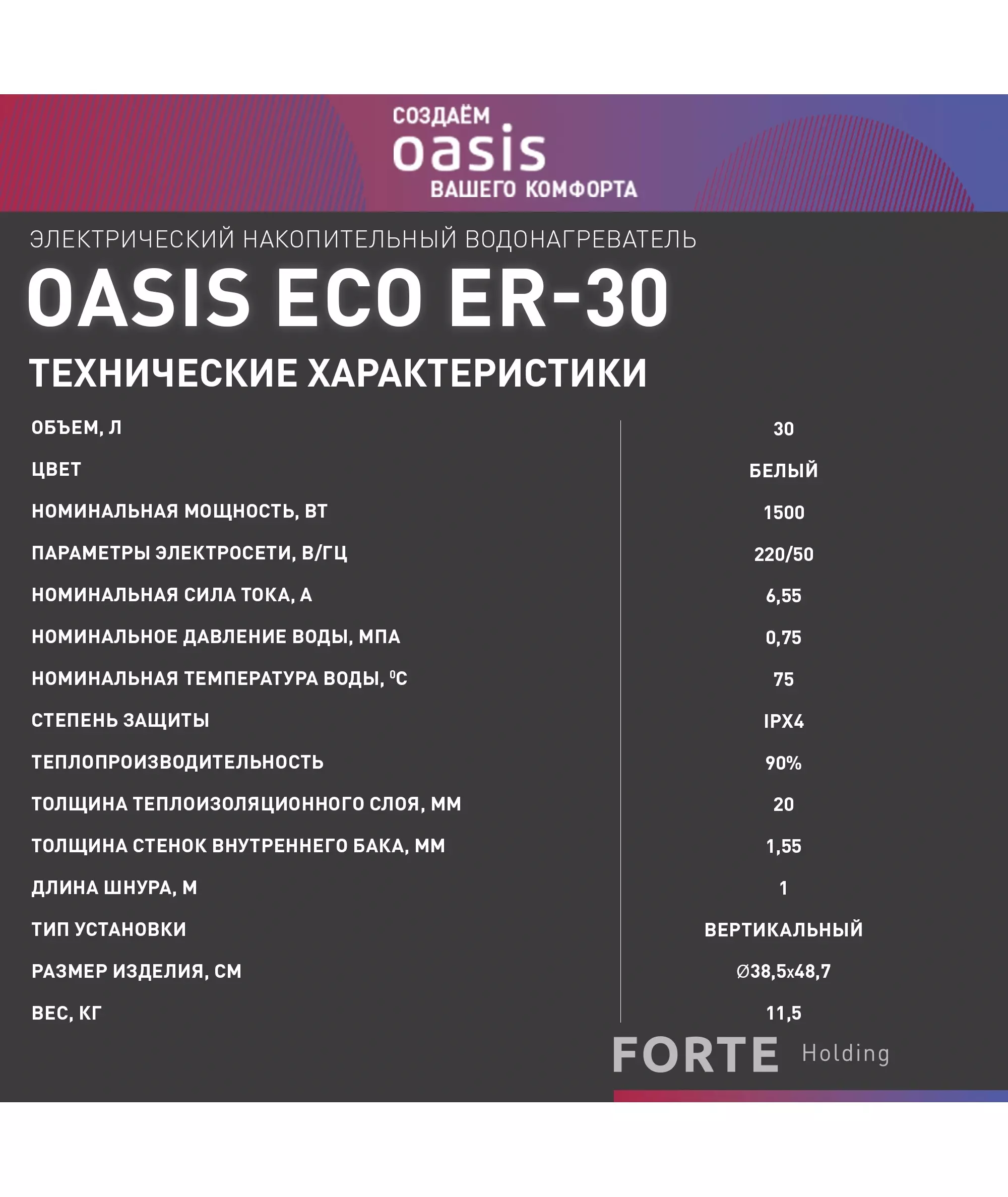 Водонагреватель OASIS Standart EcoER-30 1.5кВт 30л электрический настенный/белый [ECOER-30]