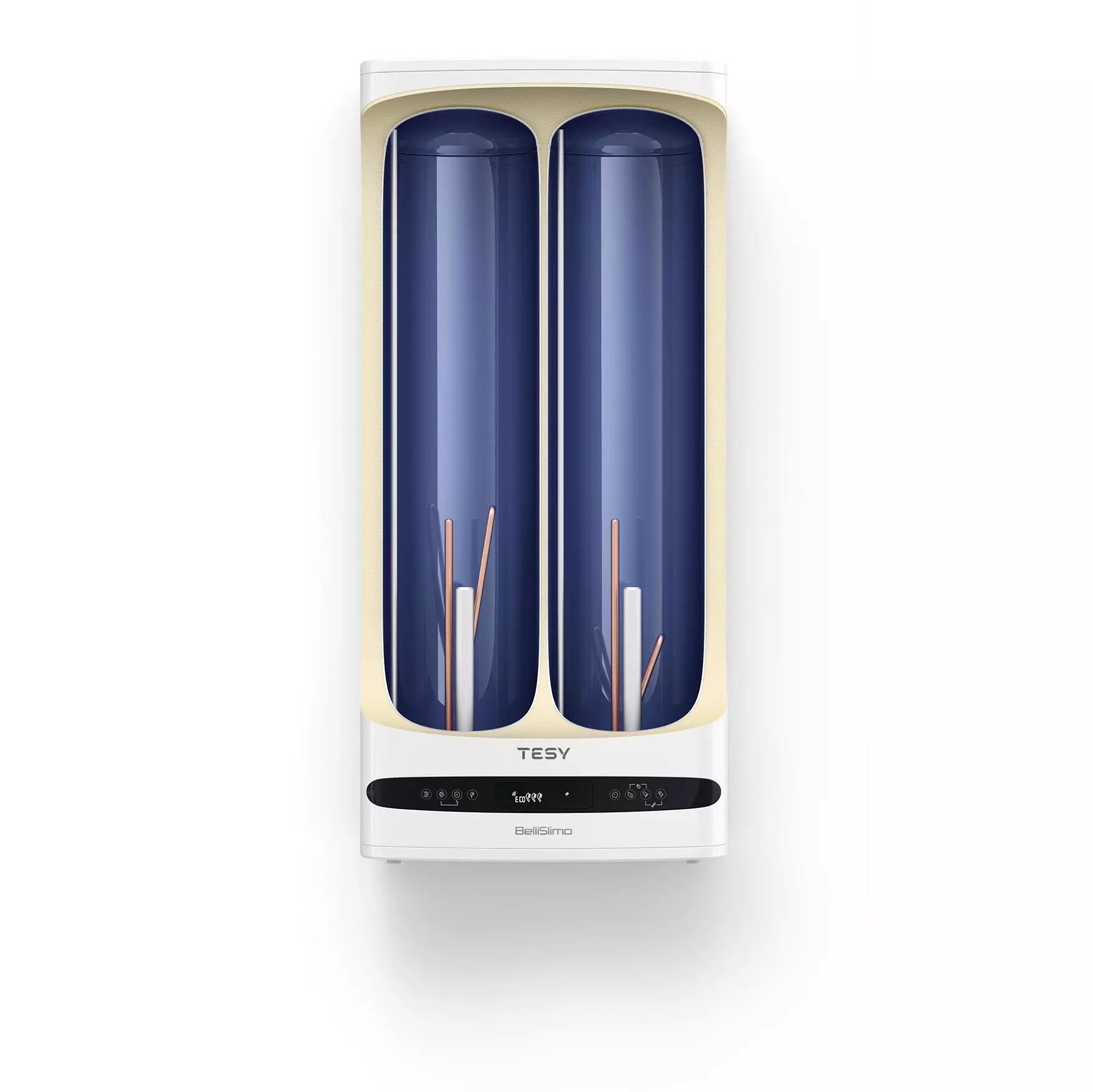 Объем 65 литров, с двойным баком плоской формы глубиной всего 28 см, с сенсорной панелью управления, LCD монитором, медным ТЭНом мощностью 2,2 кВт и универсальной установкой, от европейского производителя TESY, c покрытием бака Crystal Tech и безусловной гарантией от протечек 7 лет!