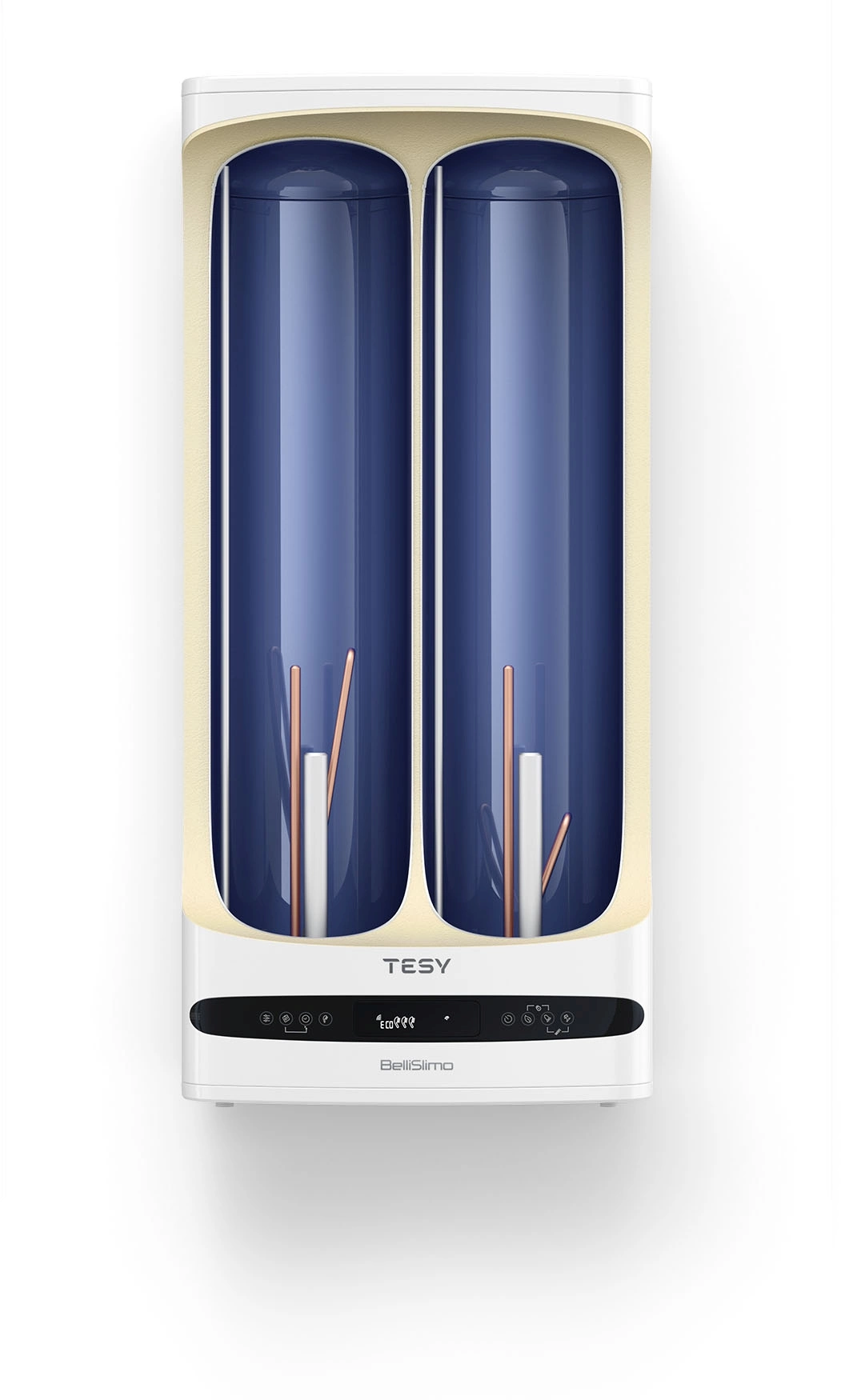Объем 65 литров, с двойным баком плоской формы глубиной всего 28 см, с сенсорной панелью управления, LCD монитором, медным ТЭНом мощностью 2,2 кВт и универсальной установкой, от европейского производителя TESY, c покрытием бака Crystal Tech и безусловной гарантией от протечек 7 лет!
