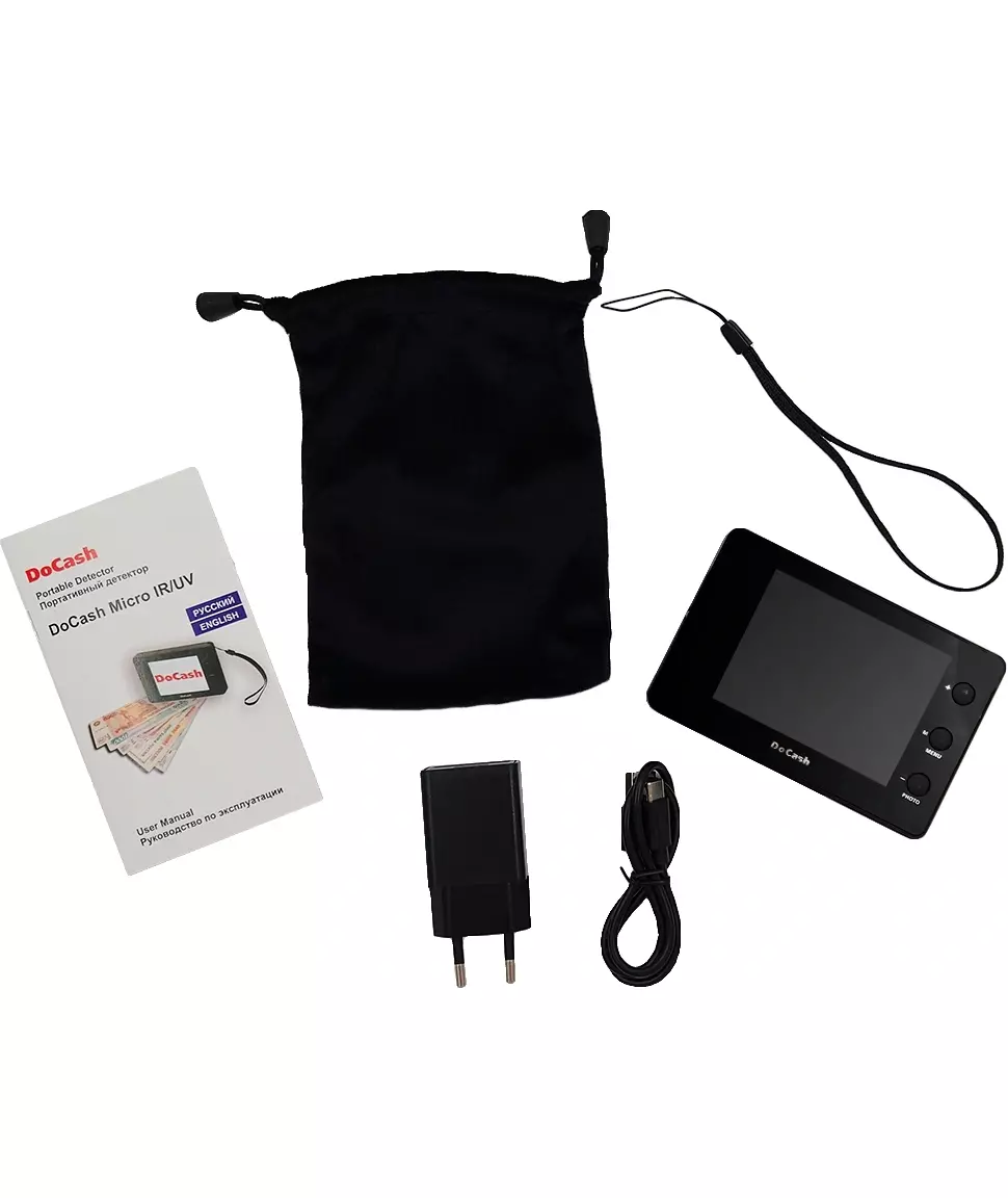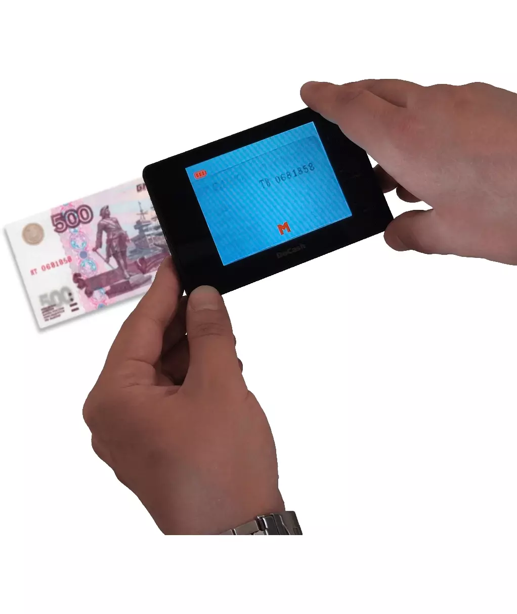 | Особенности | ИК и УФ контроль; Контроль спецэлемента "М"; Долгий срок работы без подзарядки (до 4,8 часов в активном режиме и до 540 часов в режиме ожидания); Большой 3,5" ЖК цветной дисплей; Индикация статуса заряда аккумулятора; Карманный размер; Ремешок в комплекте; Надёжный и прочный корпус. |