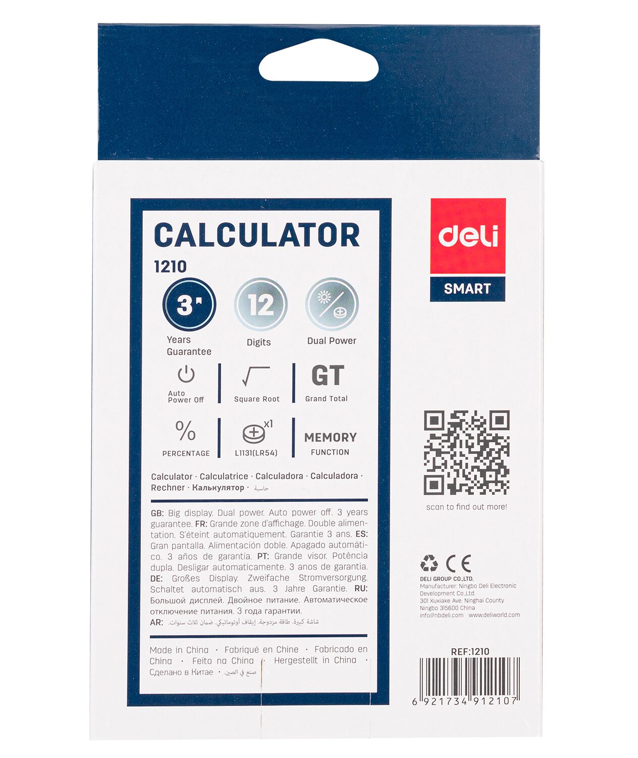 Калькулятор настольный Deli E1210 темно-серый 12-разр.