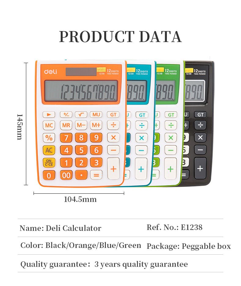 Калькулятор настольный Deli E1238/OR оранжевый 12-разр.