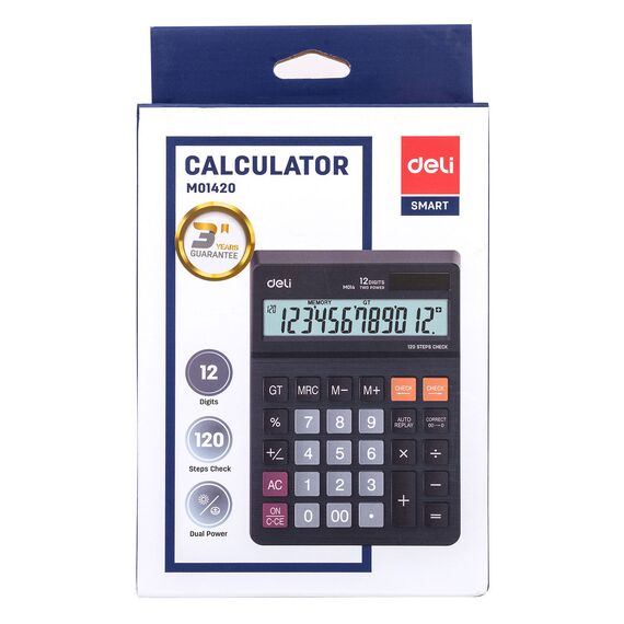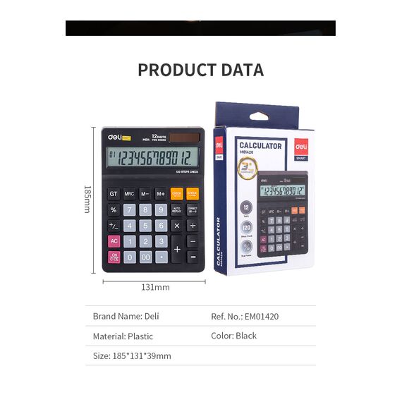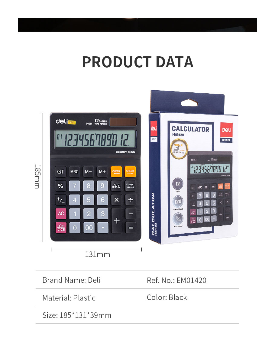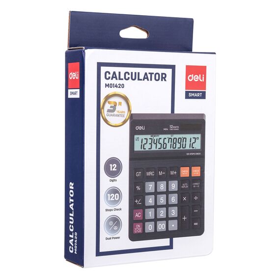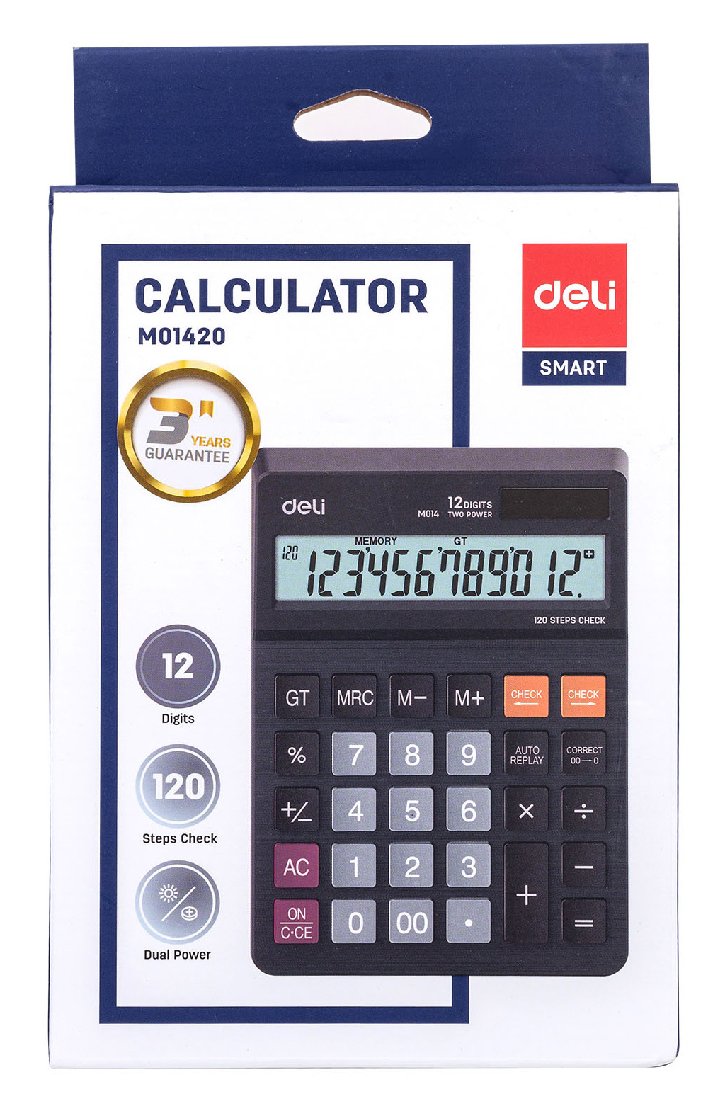 Калькулятор настольный Deli EM01420 черный 12-разр.