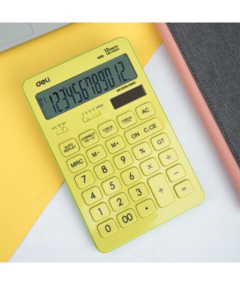 Калькулятор настольный Deli EM01551 Touch желтый 12-разр.